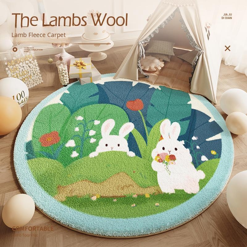 Green Cartoon Round Rug for Kids' Room - Soft Faux Cashmere Mat for Boys and Girls, Perfect Bedside Carpet and Play Mat for Babies and Toddlers.