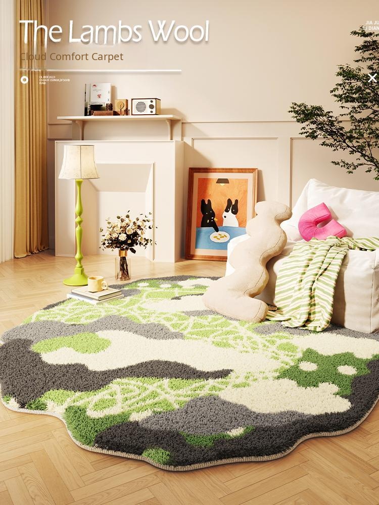 Unique Shaped Living Room Carpet - Chic Green Area Rug for Relaxation Spaces, Irregular Design, Luxurious Feel, Perfect Sofa Mat, Stylish Floor Cushion