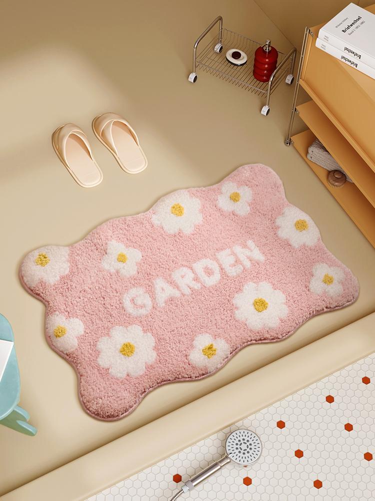 Floral Velvet Bathroom Mat - Non-Slip Plush Rug for Winter, Quick-Dry and Absorbent Pink Door Mat for Your Restroom