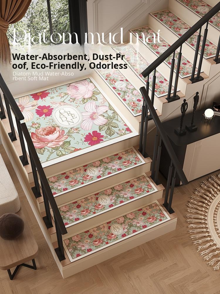 Non-Slip American Style Stair Tread Mats - Adhesive-Free Solid Wood Carpet for Loft Stairs, Indoor Diatom Mud Anti-Skid Floor Mat, Perfect for Safety and Aesthetic Appeal