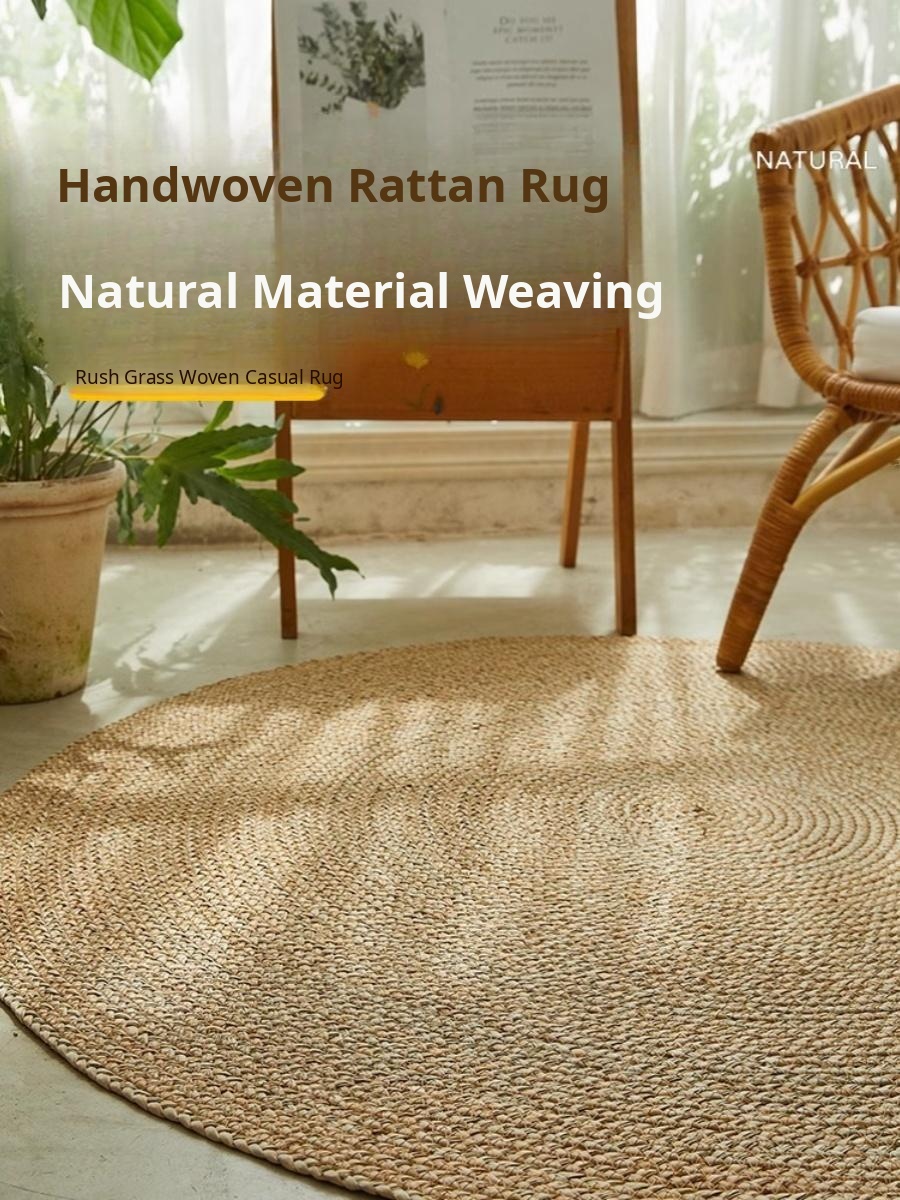 Luxury French Style Jute Area Rug for Autumn & Winter - Handwoven Cotton and Linen Non-Slip Mat for Cozy Living Rooms, Perfect for Winter Decor