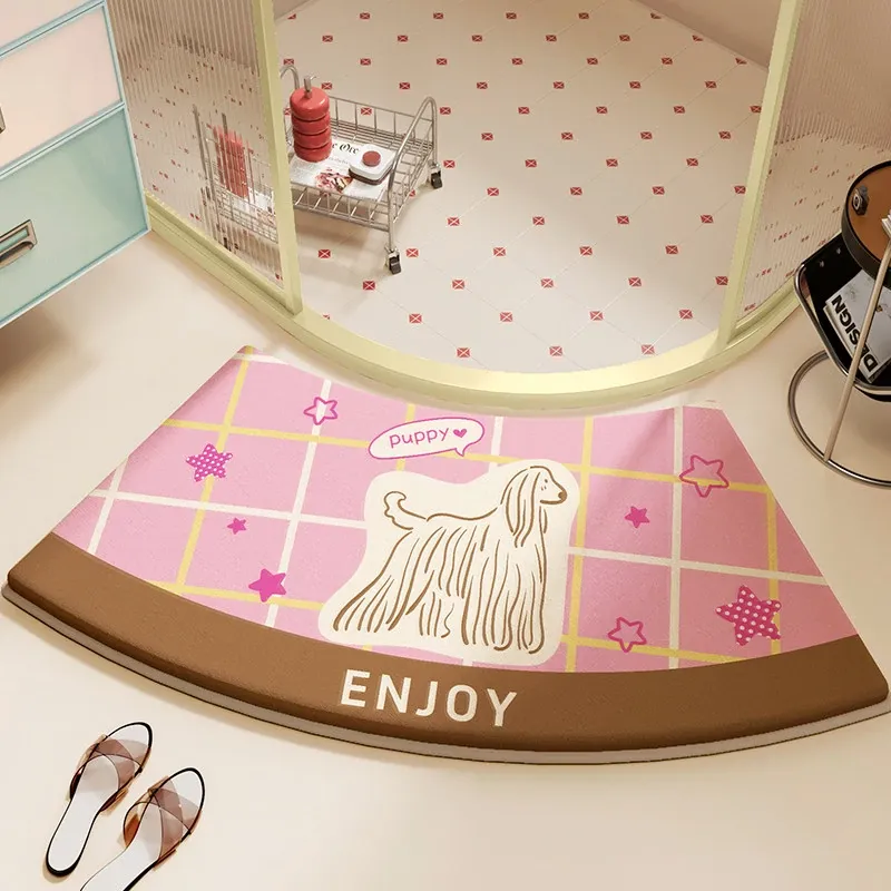 ピンクスターの甘い犬プリントメモリフォームバスルームマット-アーチ型