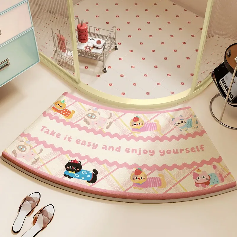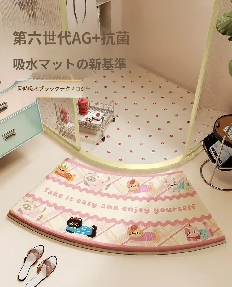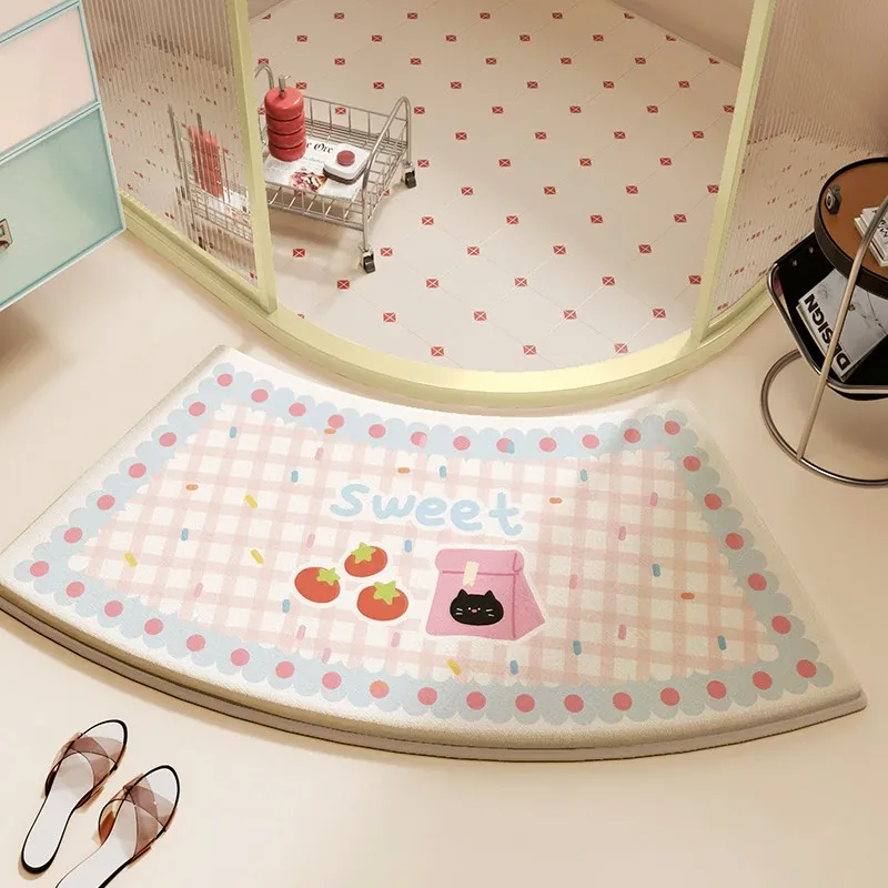 カラフルなアーチ型バスルームマット - 滑り止め付き、シャワールームやトイレに最適!吸水性抜群で、お手入れ簡単な可愛いフロアカーペット。おしゃれなデザインで、快適なバスタイムを演出します!