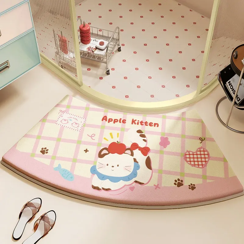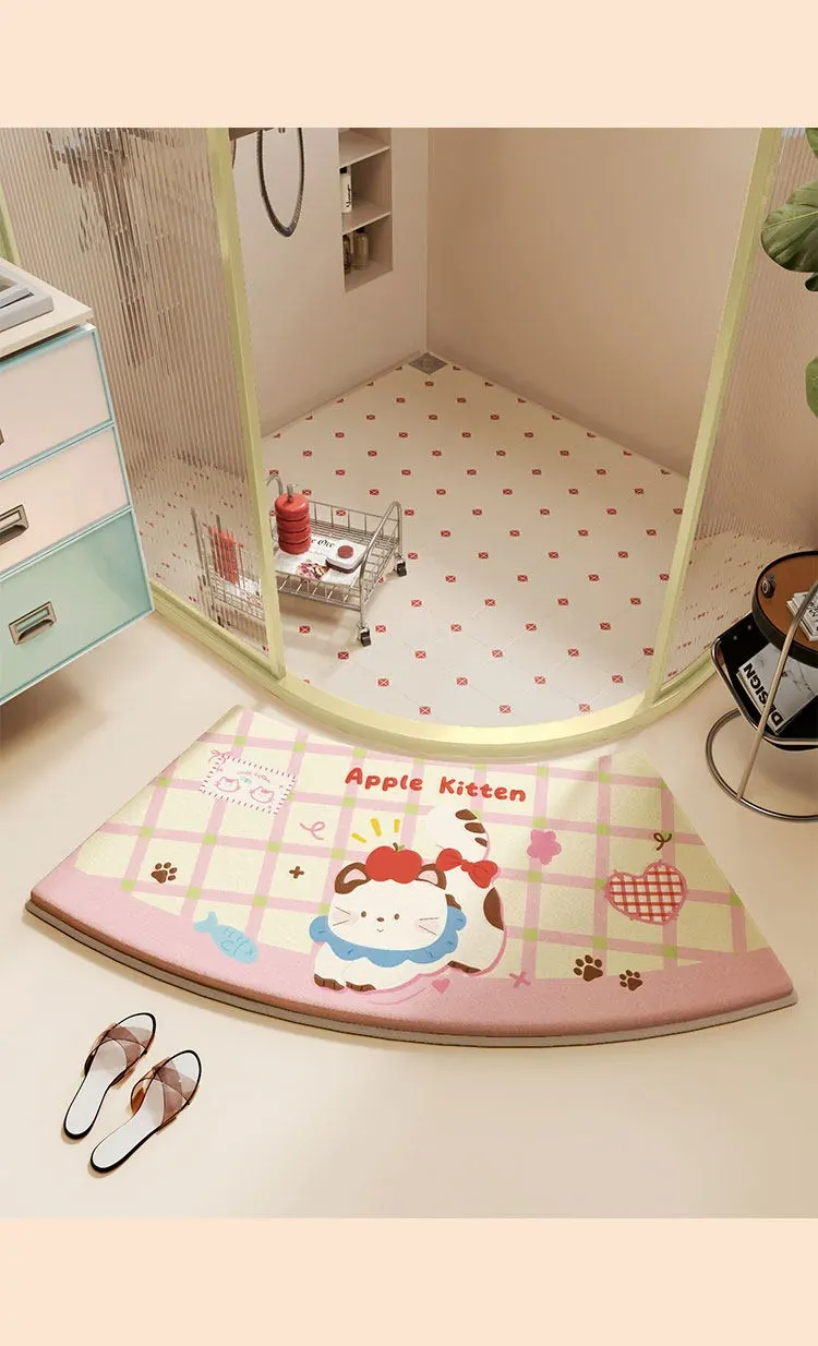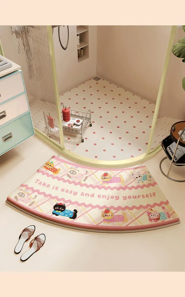 ピンク系キャットファンプリントメモリフォームバスルームマット-アーチ型