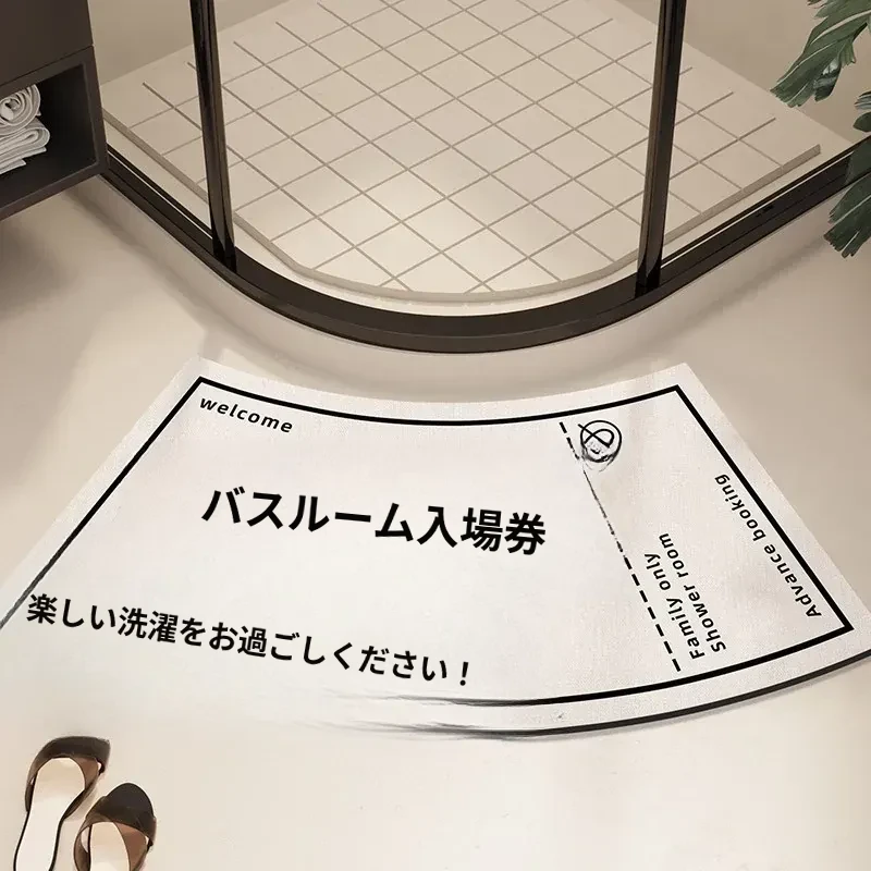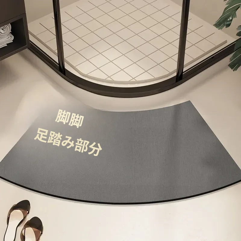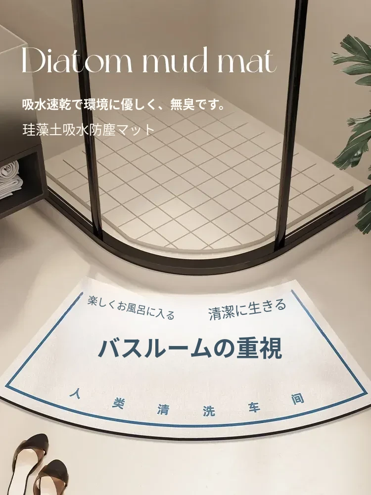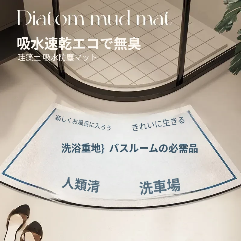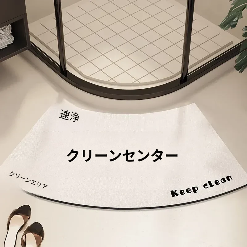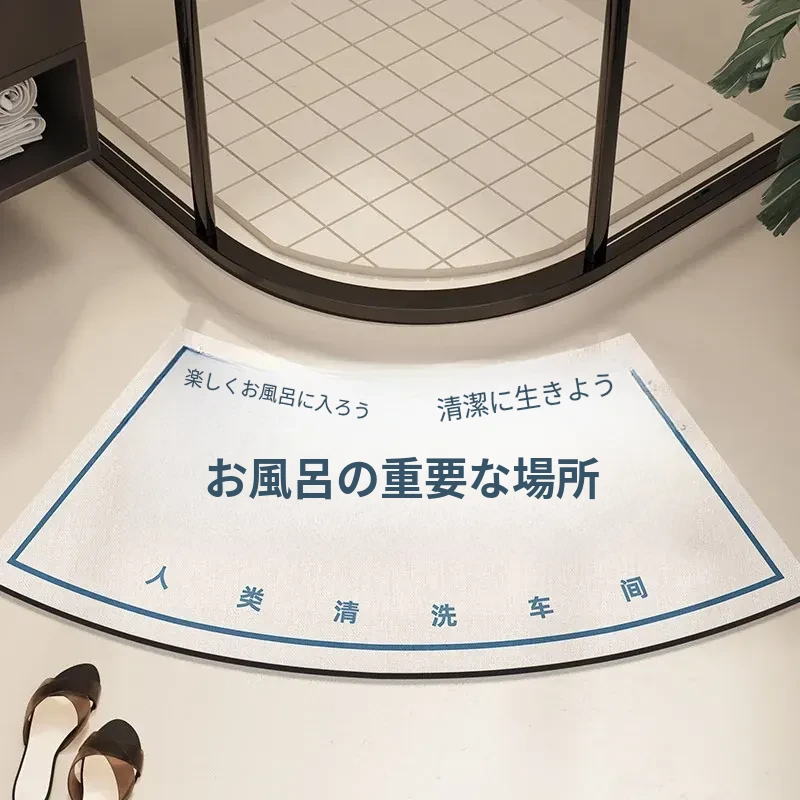 弧形デザインのバスルームマット|滑り止め付き|お洒落なメッセージ入り|トイレに最適|吸水性抜群の珪藻土マット|速乾性で清潔!