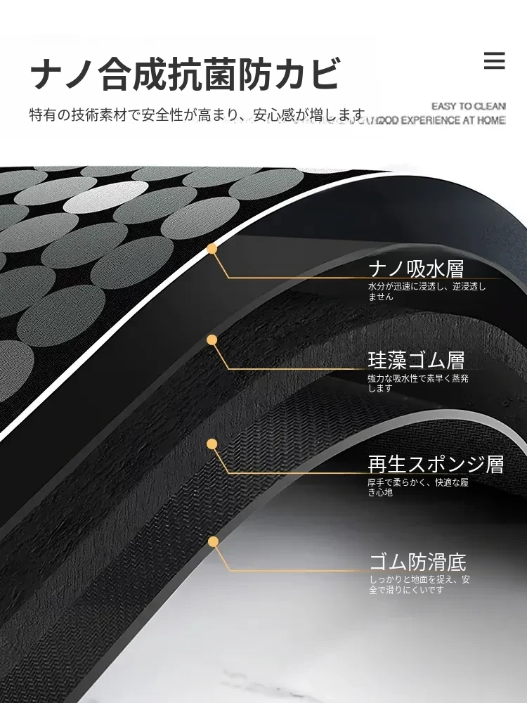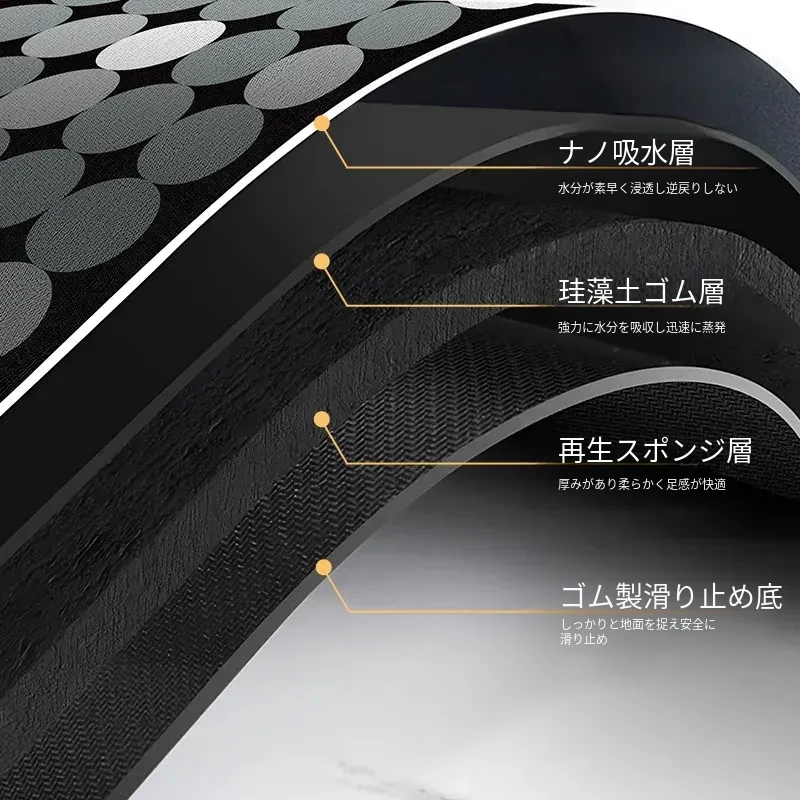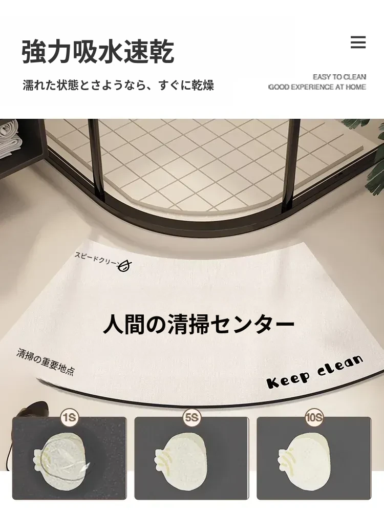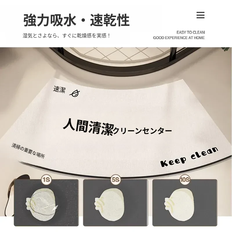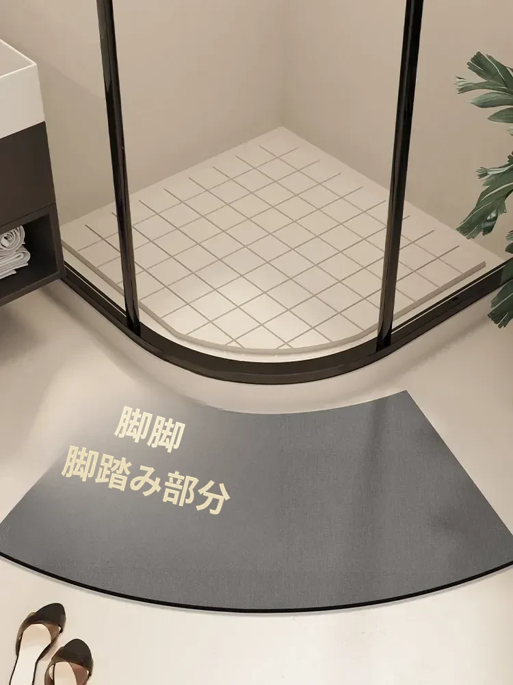 弧形デザインのバスルームマット|滑り止め付き|お洒落なメッセージ入り|トイレに最適|吸水性抜群の珪藻土マット|速乾性で清潔!