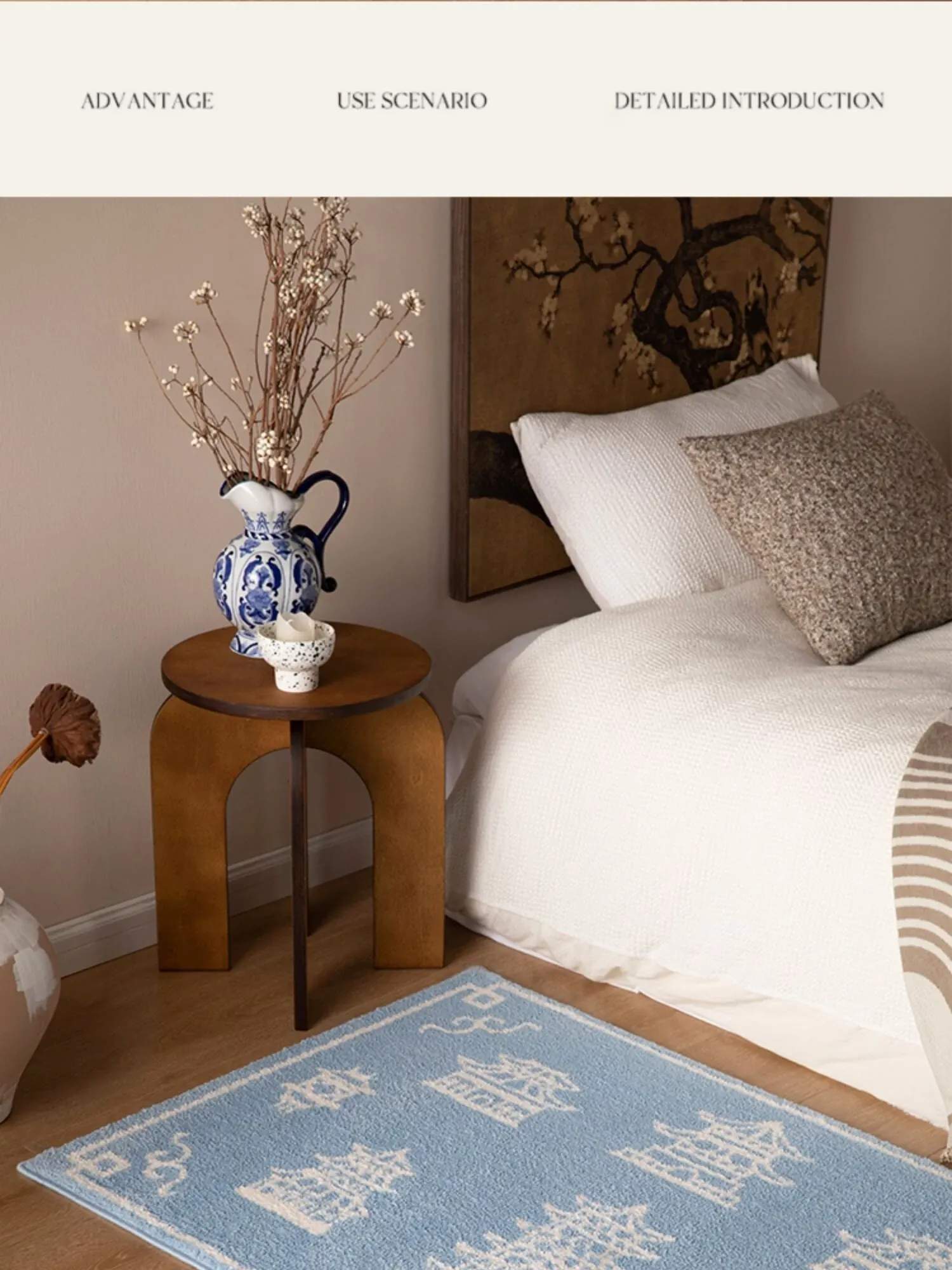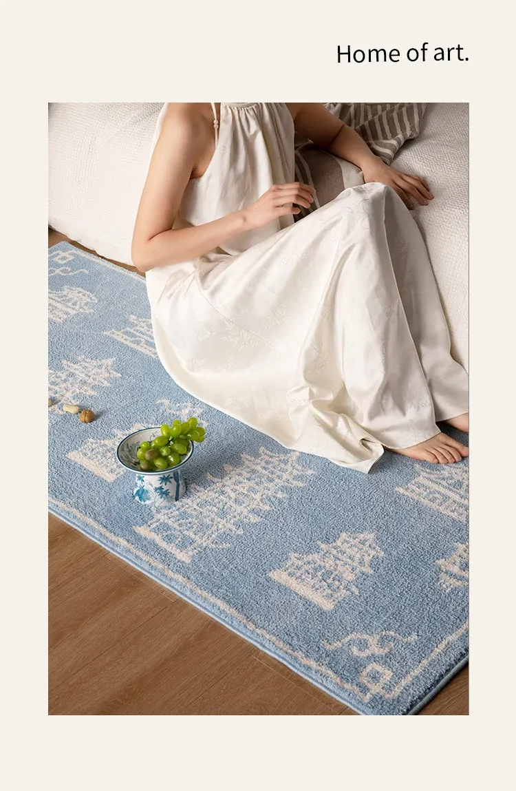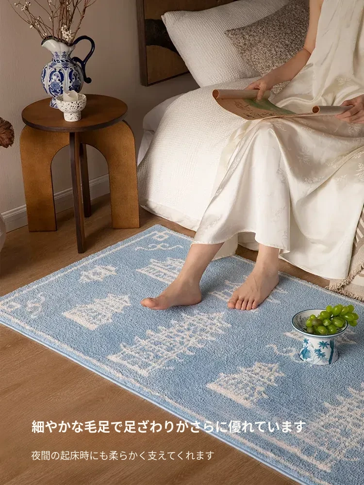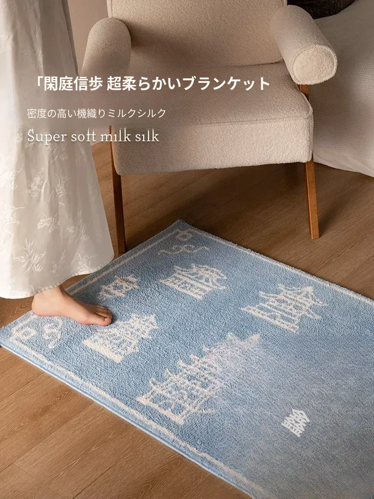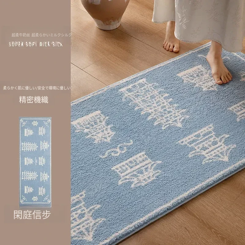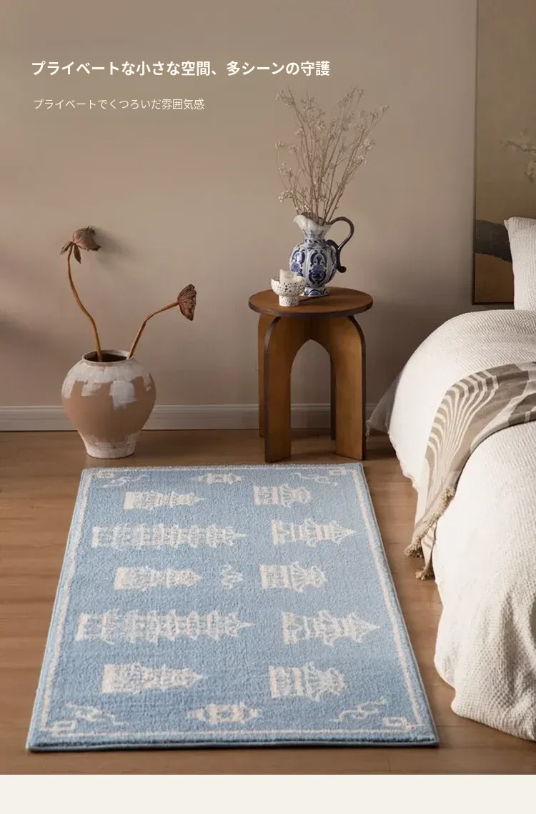 新中式スタイルの牛乳シルクラグ - リビングルームや衣装部屋にぴったりな軽奢感!ソファやコーヒーテーブルの下に最適、厚手で寝室のベッドサイドにぴったりなロングデザイン。心地よい肌触りで、インテリアをグレードアップ!