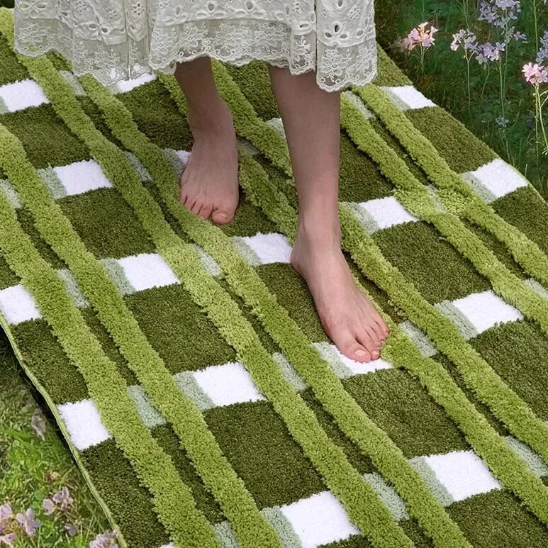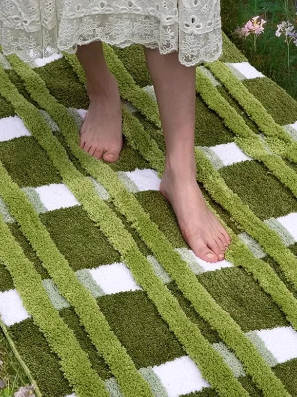 春の訪れを感じる!ふわふわの滑り止め付きリビングラグ、田園風で冬でも快適。お手入れ不要の寝室サイドマットで、心地よい空間を演出。