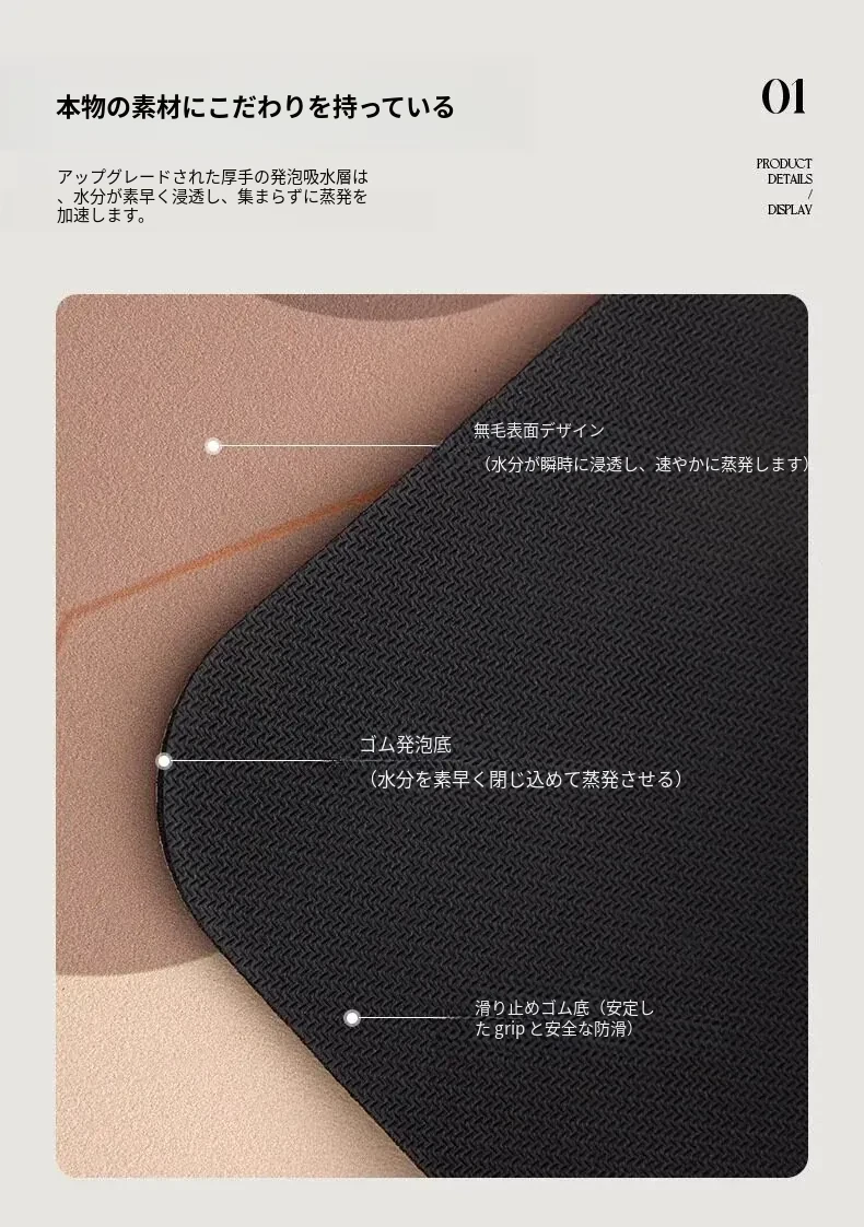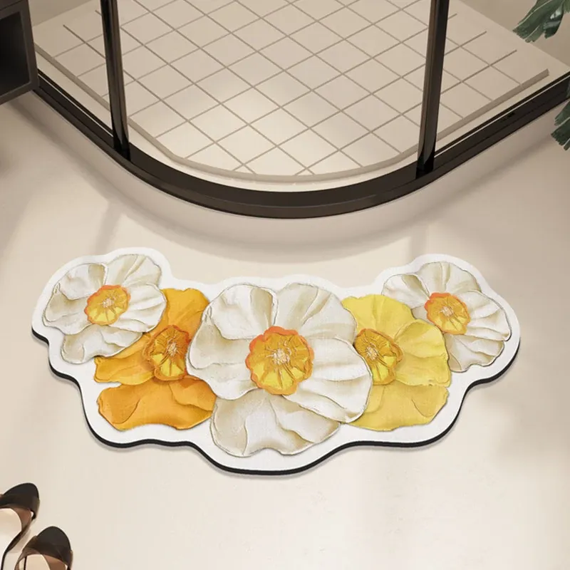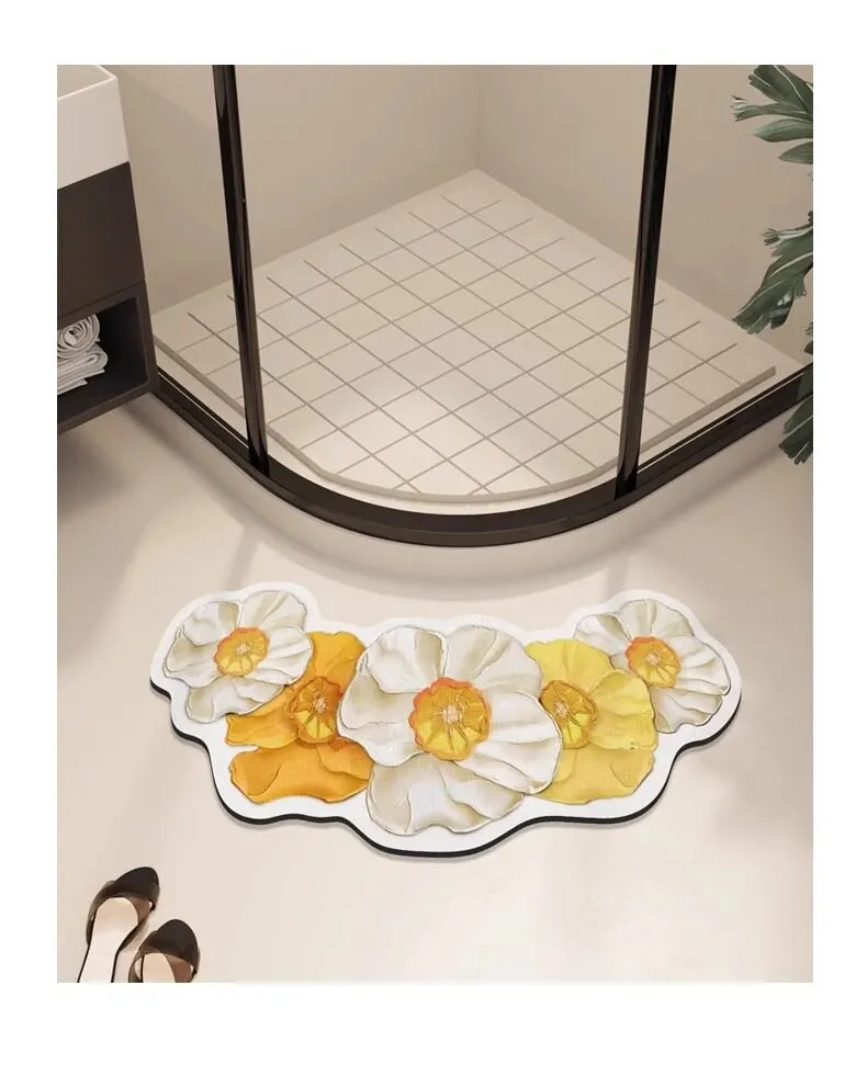 さわやかでおしゃれなアーチ型バスルームマット!吸水速乾、浴室やシャワールームの入り口に最適なシリカゲルフットマット。滑り止め付きで安全性も抜群、扇形デザインでお部屋を明るく彩ります!