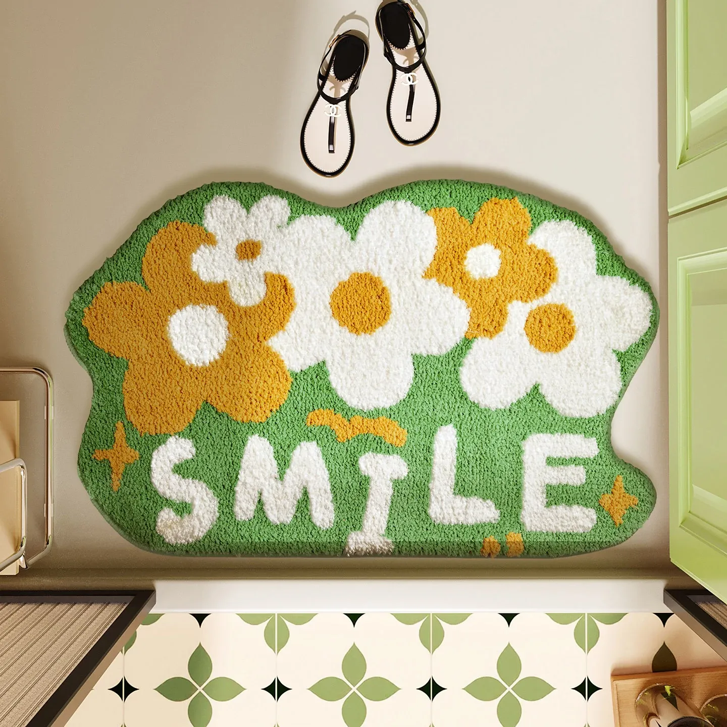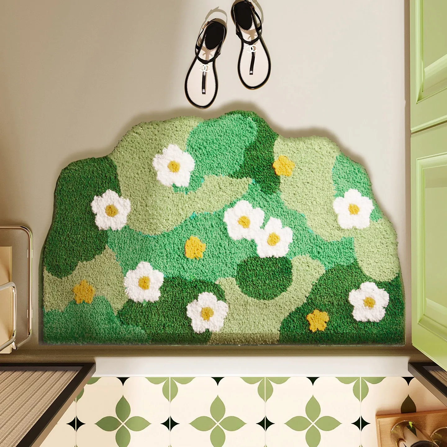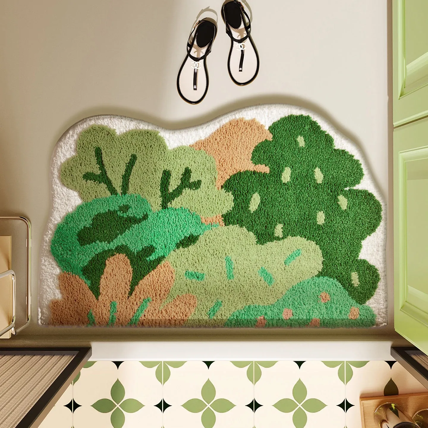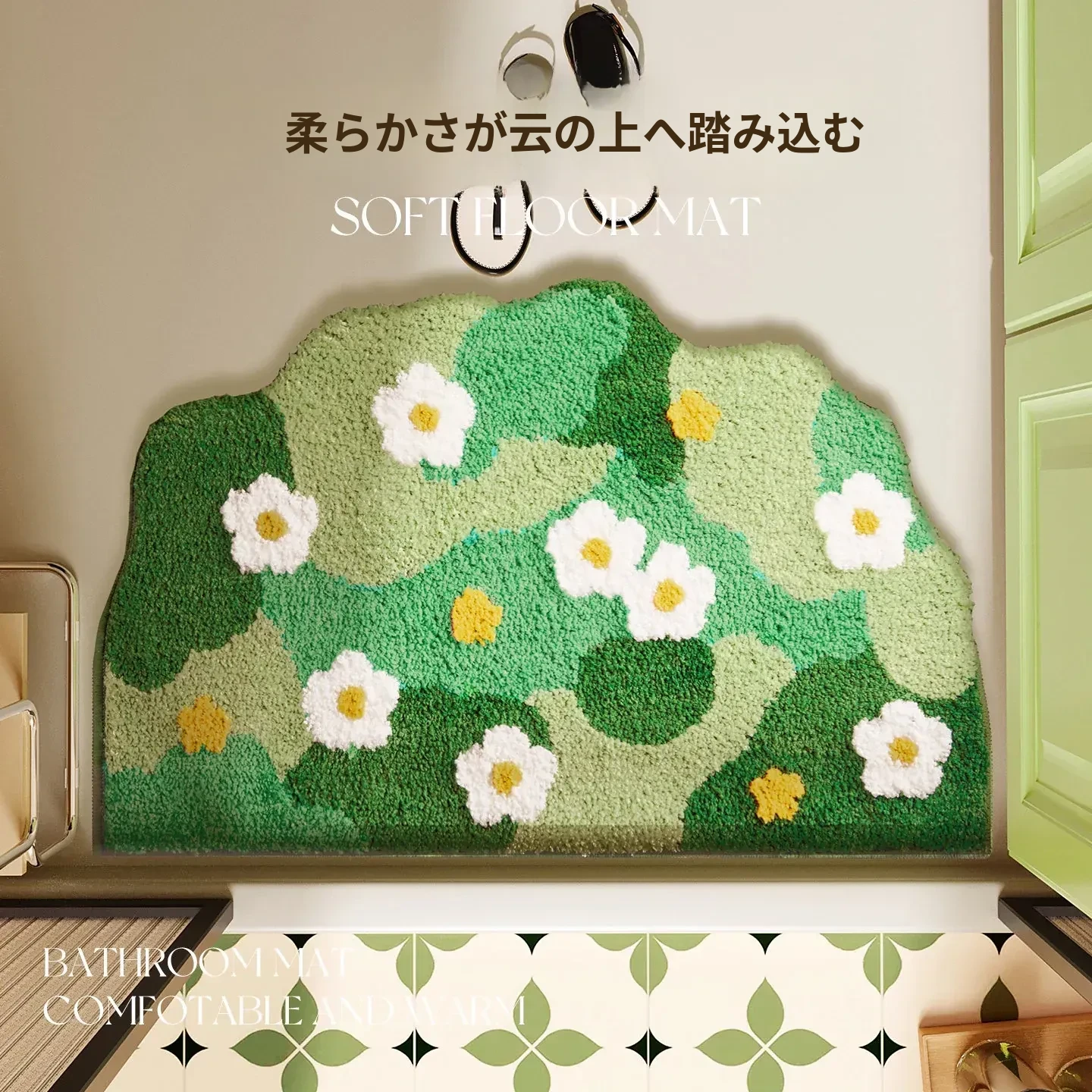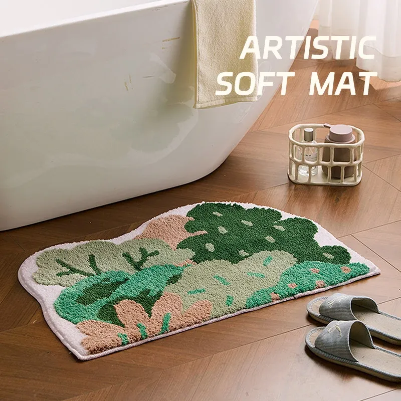 グリーンフォレスト バスルームフロッキングマット 滑り止め付きシャワールーム用玄関マット 清新感あふれる吸水速乾足元マットで、快適なバスタイムを楽しもう!