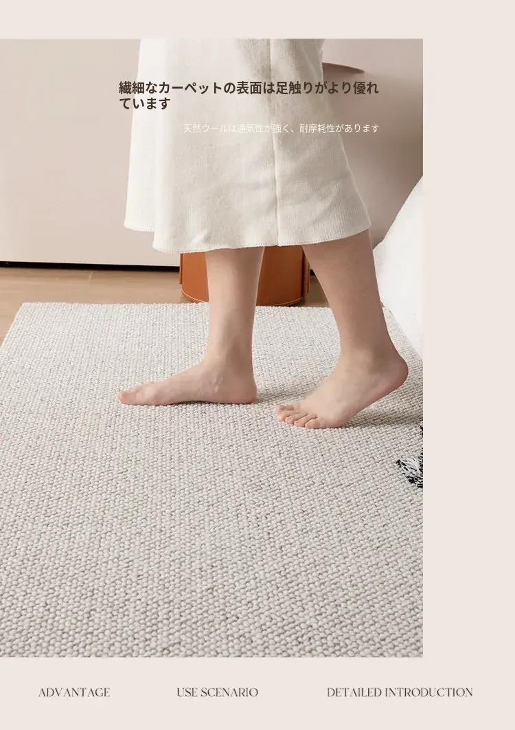 ニュージーランド産の高級ウールラグ - ベッドサイドやリビング、書斎にぴったりな軽やかで贅沢なカーペット。心地よい肌触りで、居心地の良い空間を演出します。