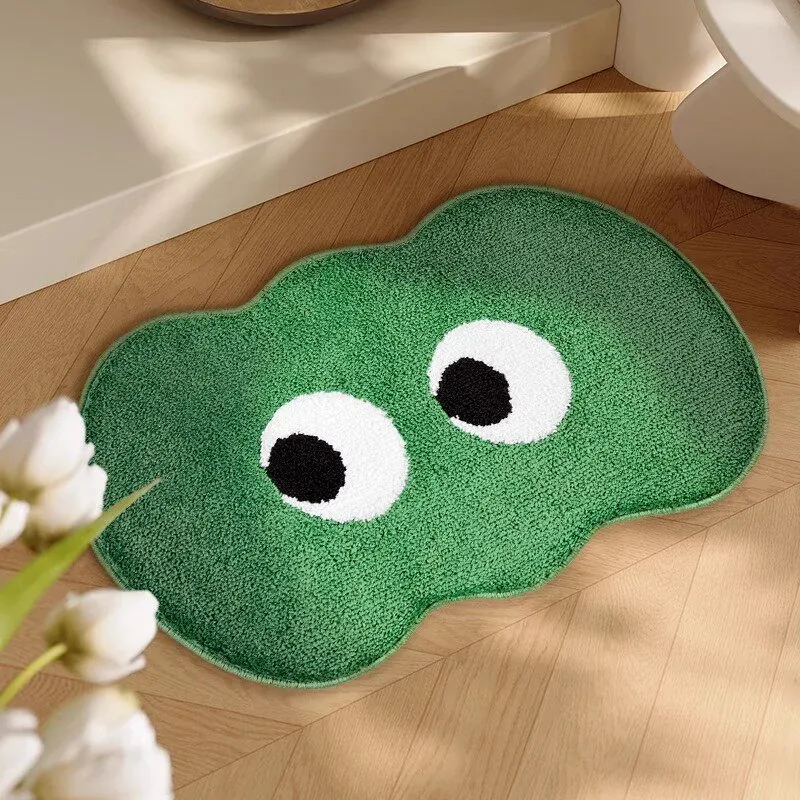 大きな目の小さな緑のフロッキーラグ