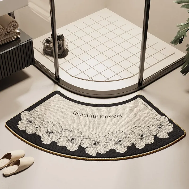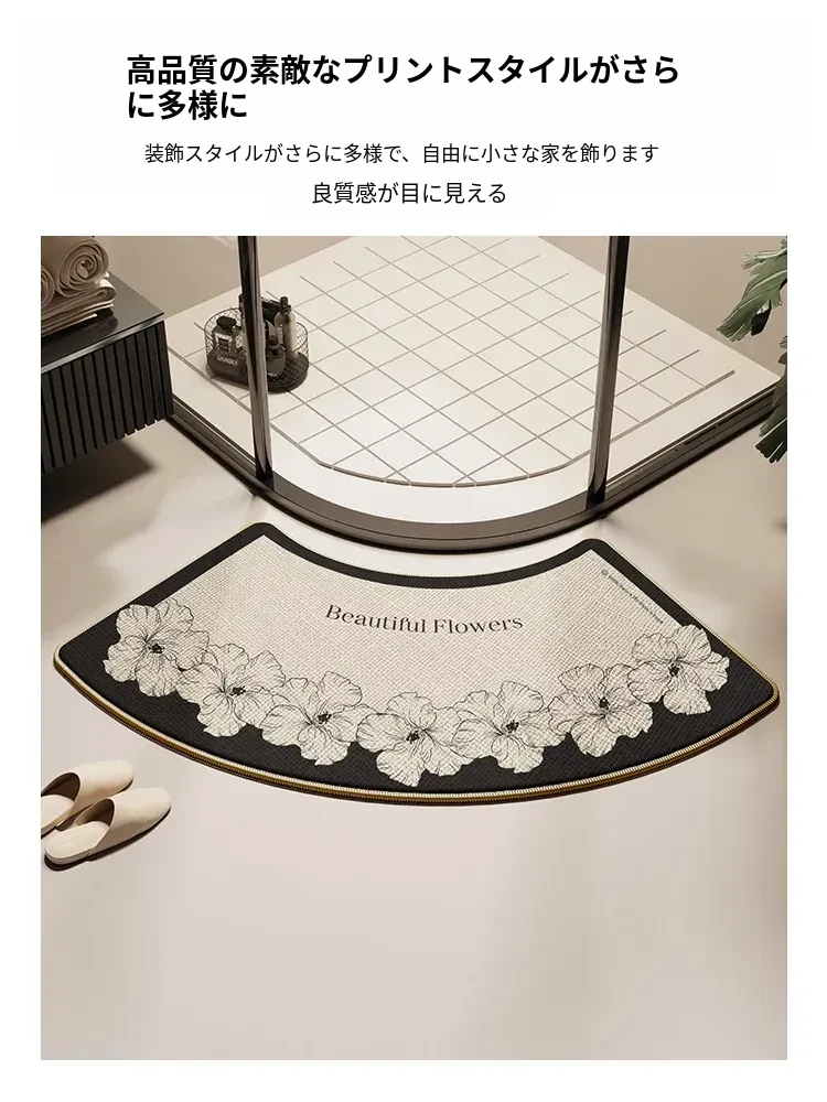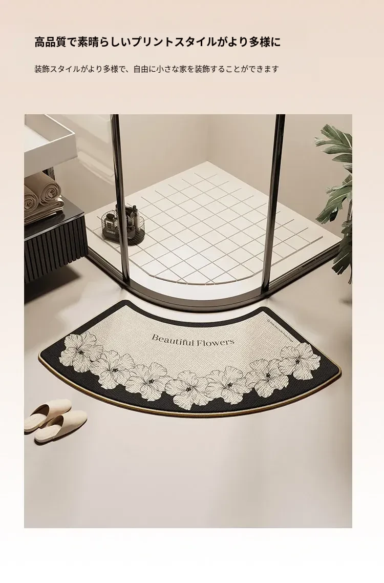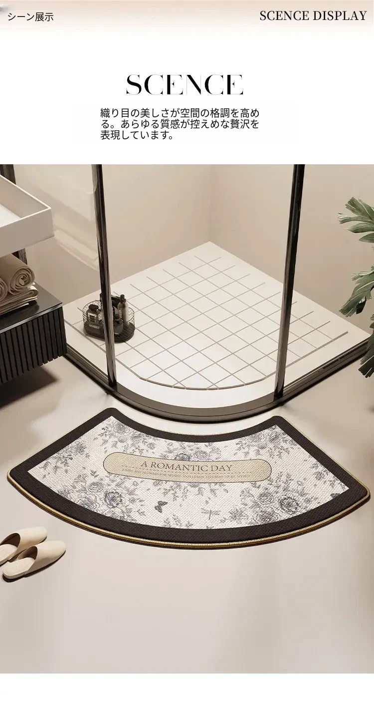 フランス風アーチ型バスルームマット|高級感溢れるデザイン|シャワールームやバス用に最適|滑り止めで安心|吸水性抜群のトイレ用マット