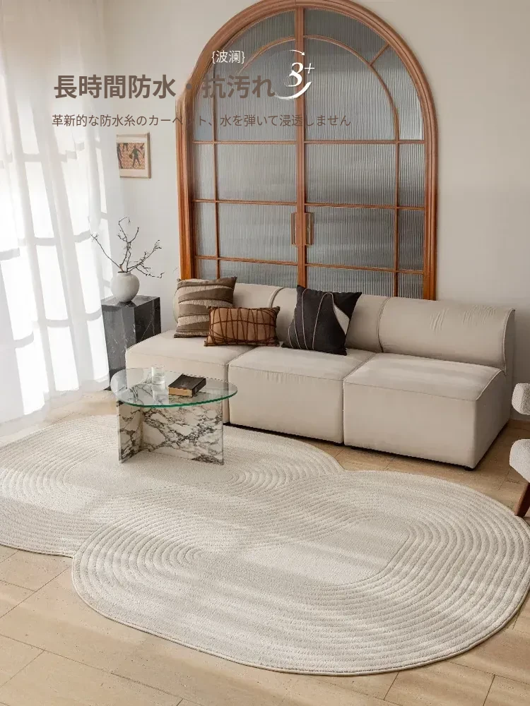 モダンな軽奢高級リビングラグ、手洗い不要でお手入れ簡単!ヨーロピアンクリームスタイルの寝室・書斎用異形マット。おしゃれで快適な空間を演出します!