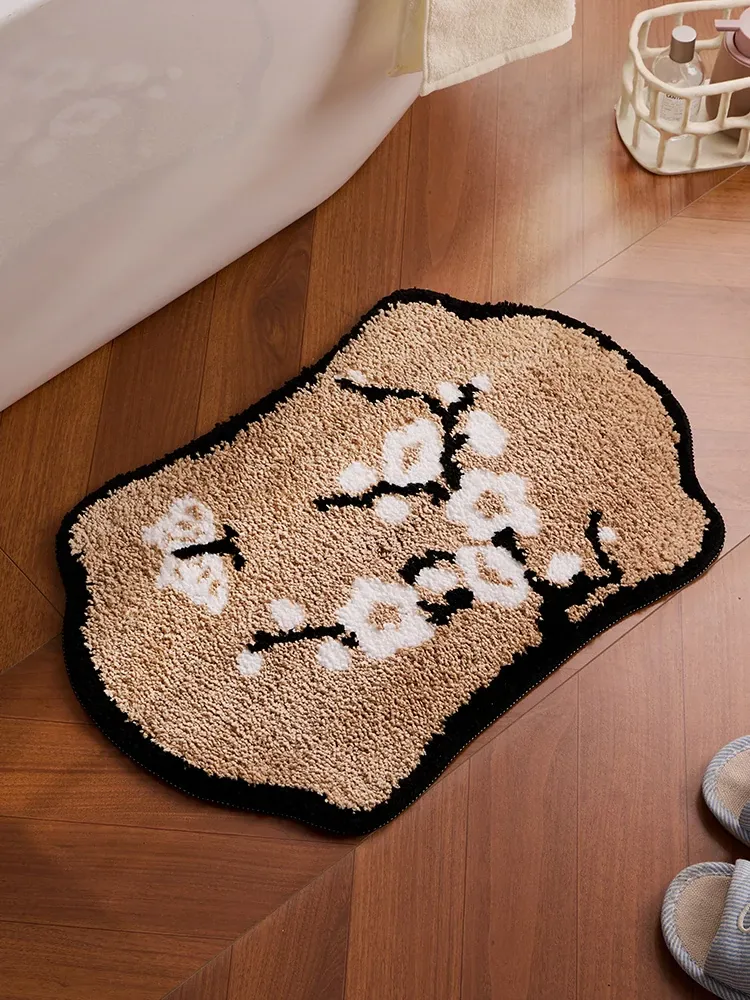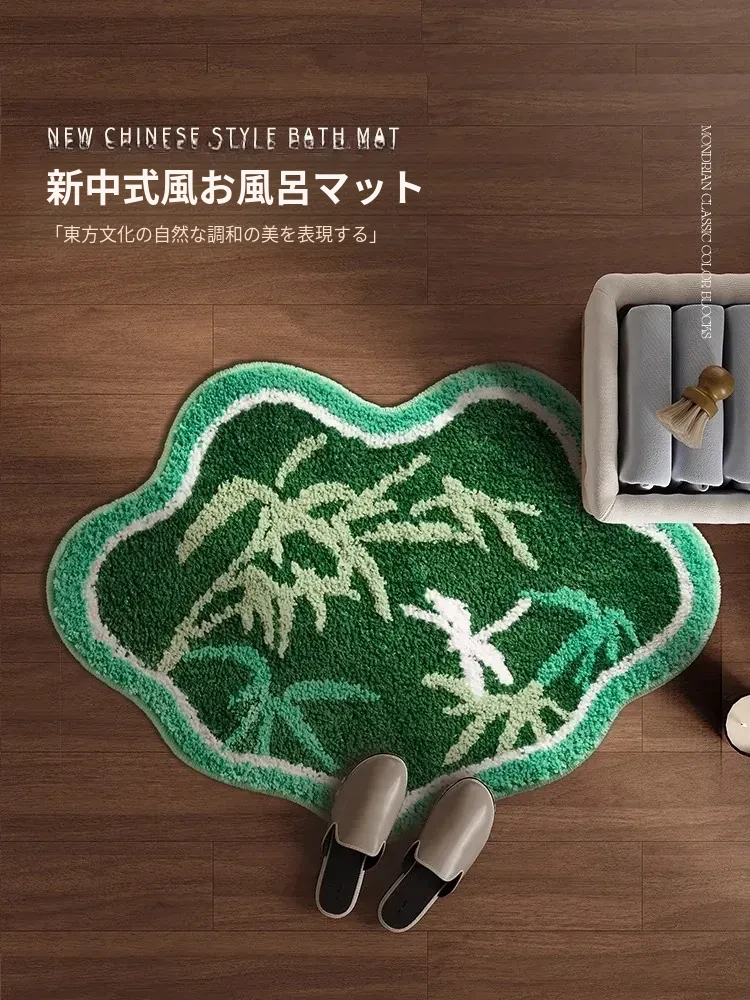 新中式デザインのバスルームマット!優れた吸水性と冬の寒さから守る防滑性を兼ね備えたトイレ用フロアマット。ふんわりとした植毛素材で、快適な足元を実現します。おしゃれで機能的なバスルームを演出!
