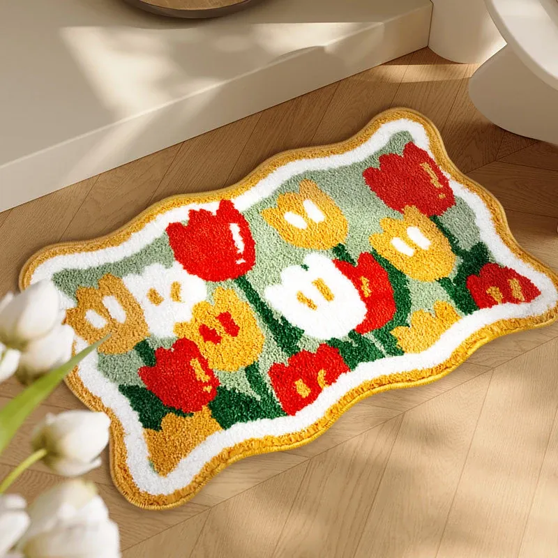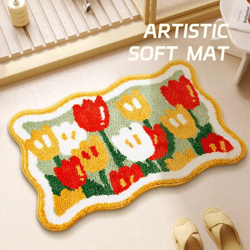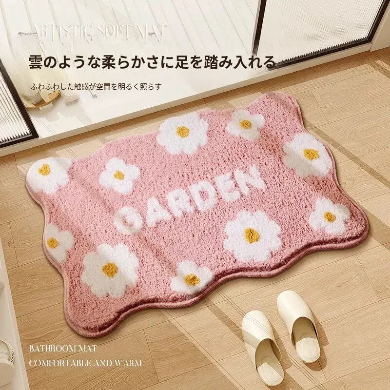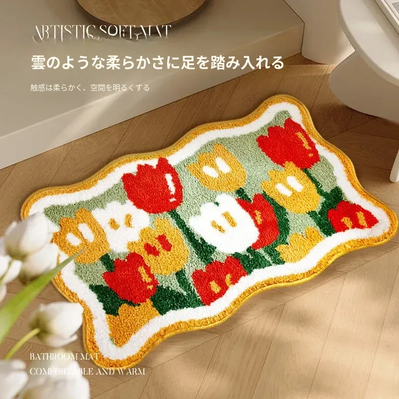 吸水速乾!バスルーム専用の形状マット - 滑り止め付き、洗面所やトイレの入り口に最適なふわふわラグ。快適さと安全性を両立したあなたのバスルームの必需品!