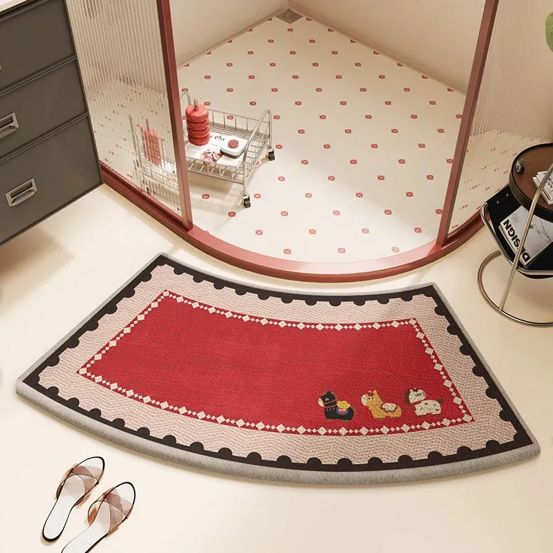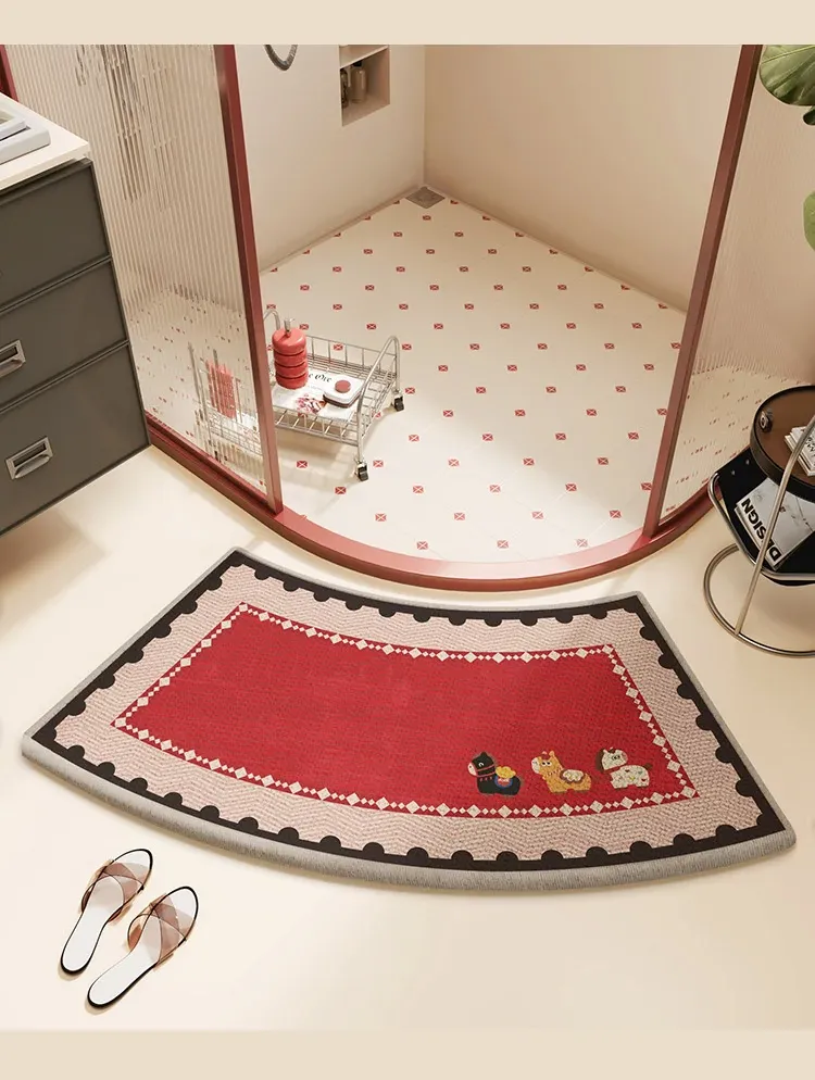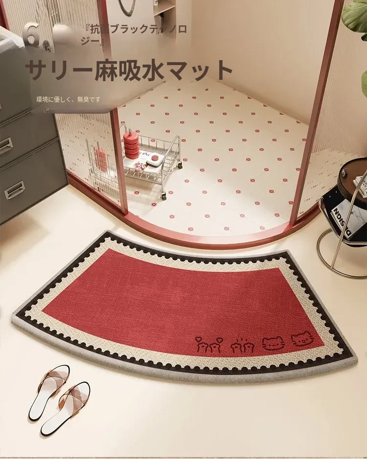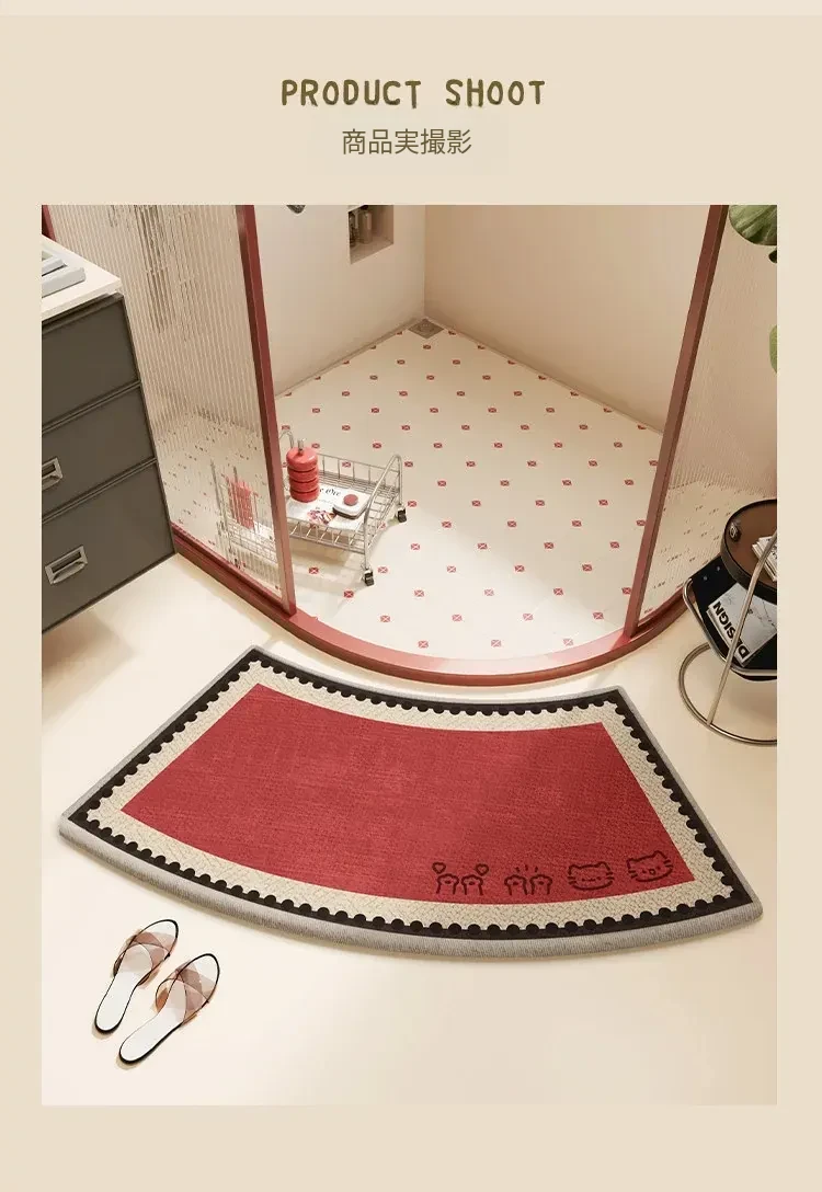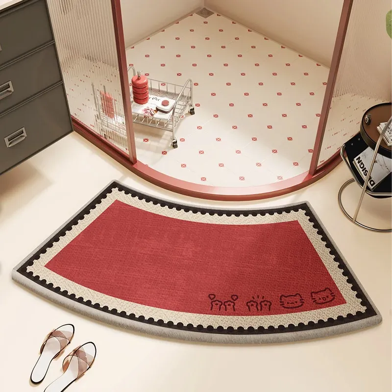 赤い扇形のバスルームマット - 吸水性抜群!トイレの玄関マットにも最適なシリカゲル製の踏み台マット。あなたのバスルームをスタイリッシュに彩ります!