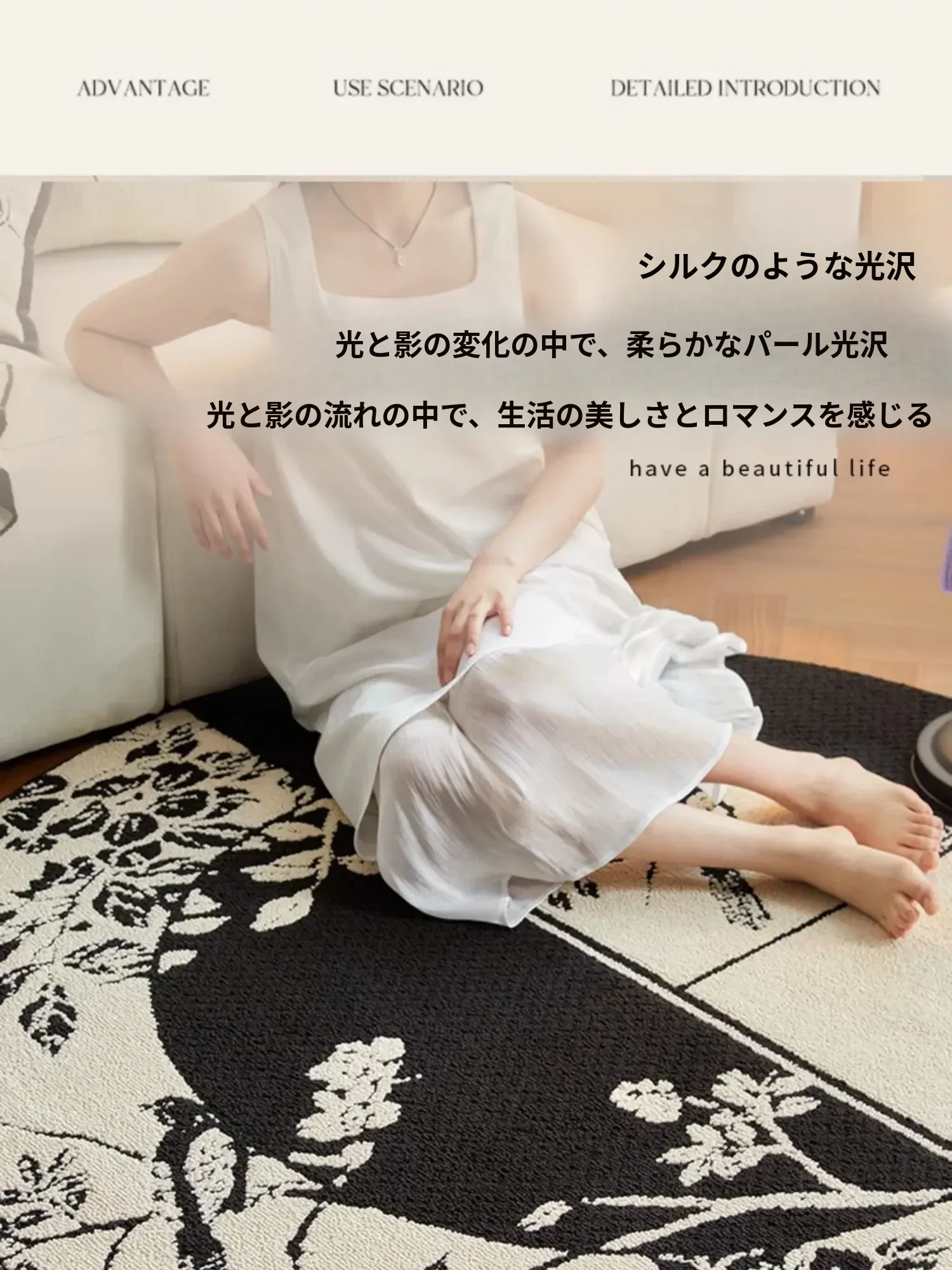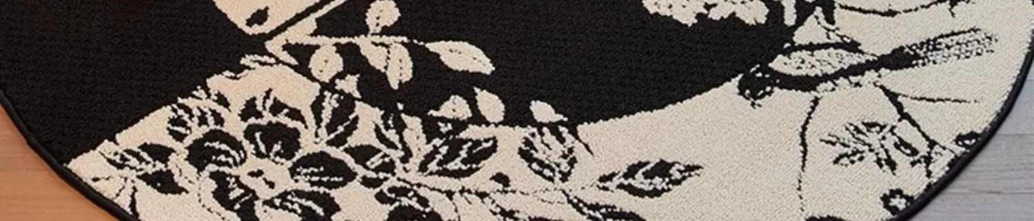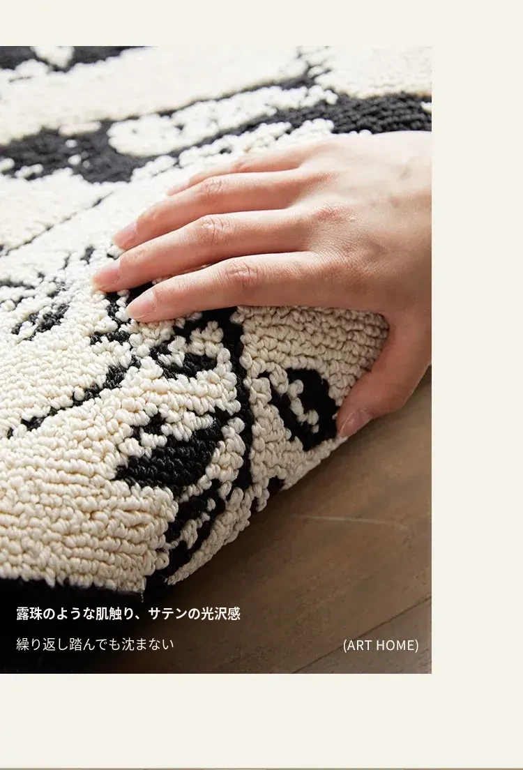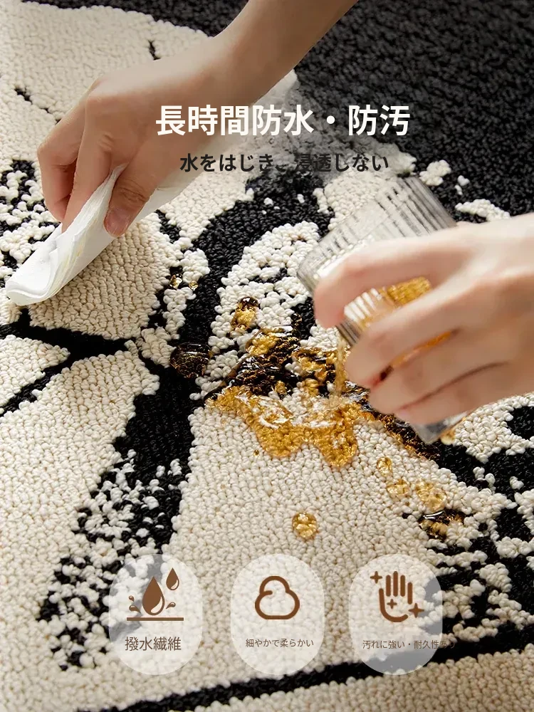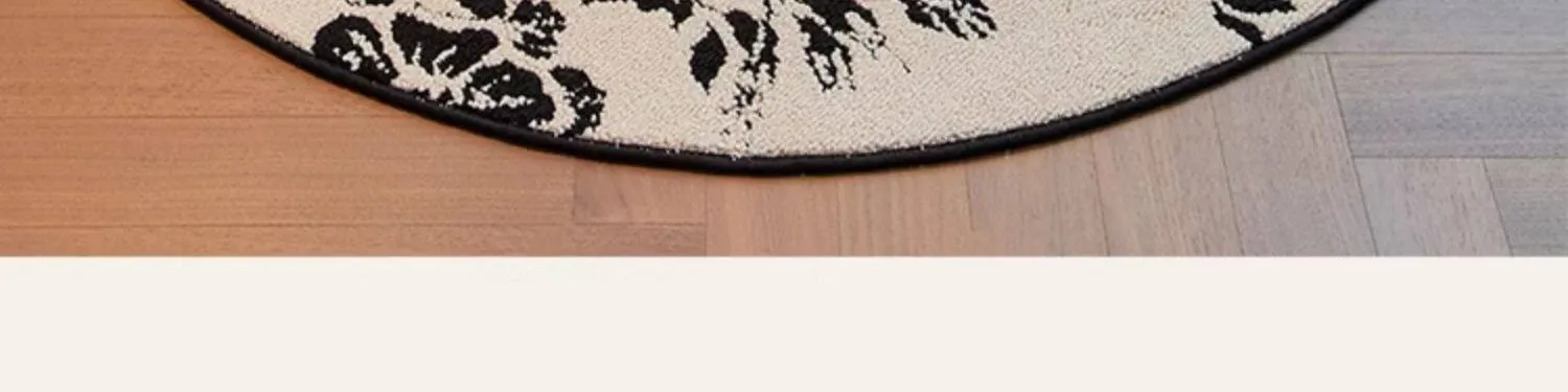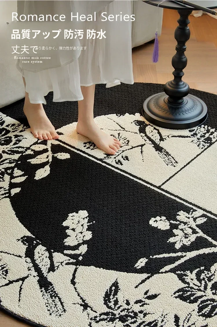 新中式デザインの防水・汚れ防止ラウンドカーペット|ブラック&ホワイトのレトロスタイル|リビングやベッドサイド、ソファやテーブルの下に最適|お手入れ簡単で耐久性抜群のクッションマット!