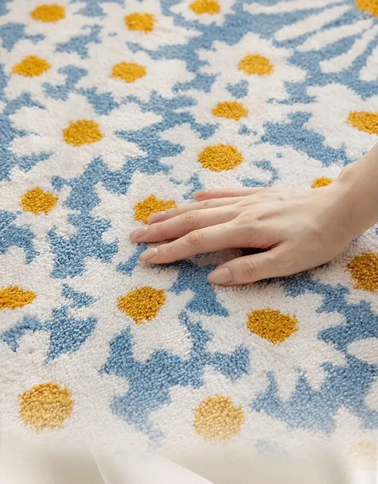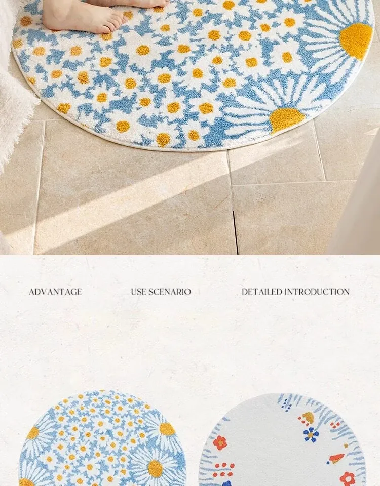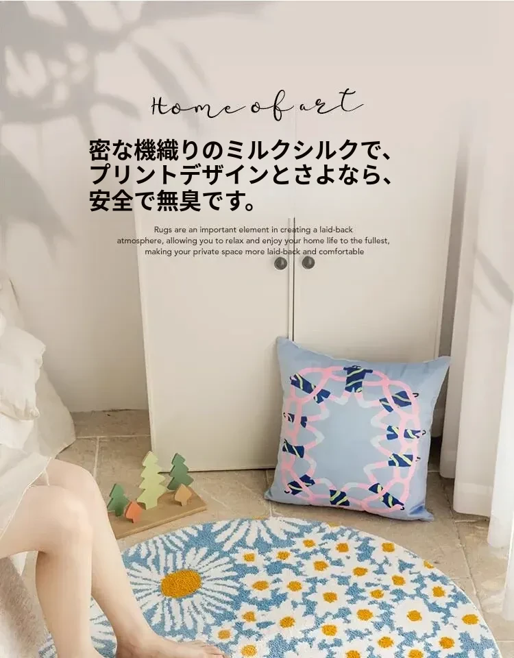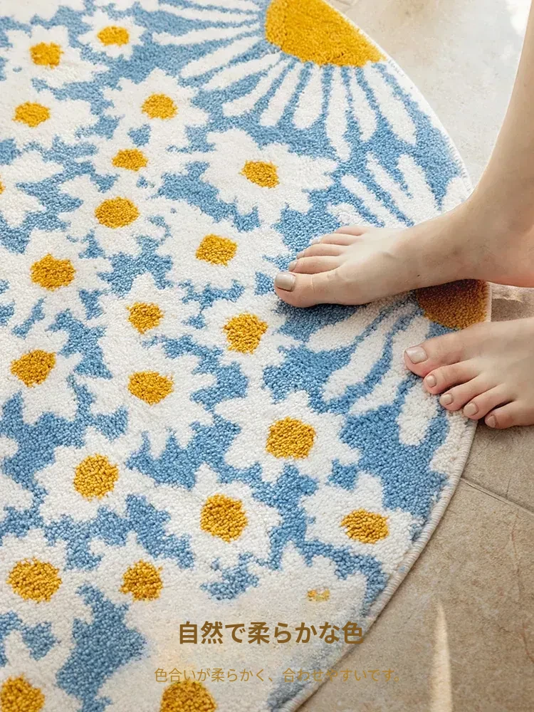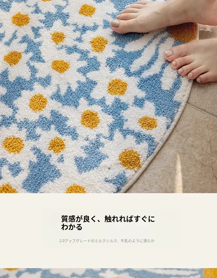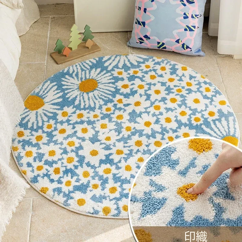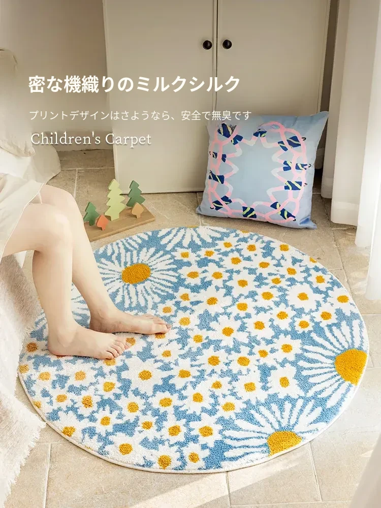 雛菊盛開牛乳絲円形カーペット