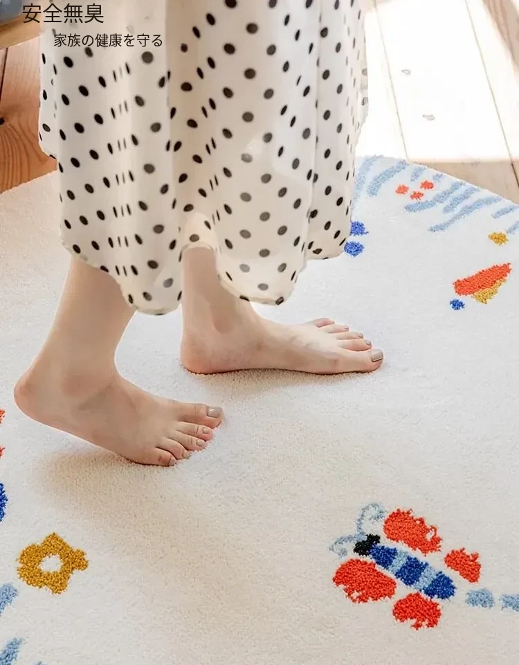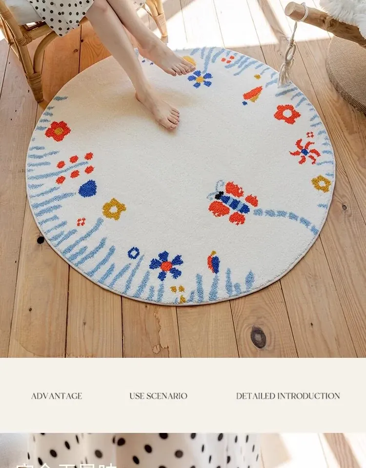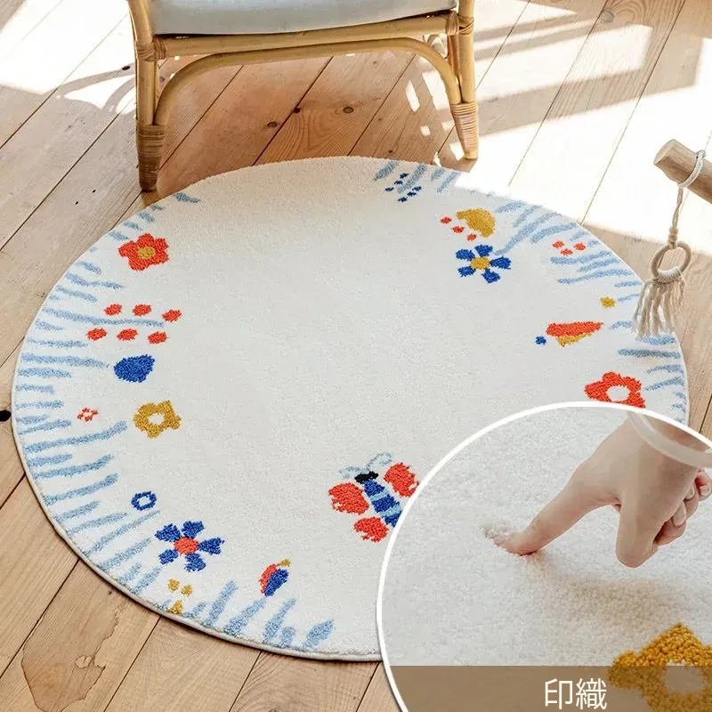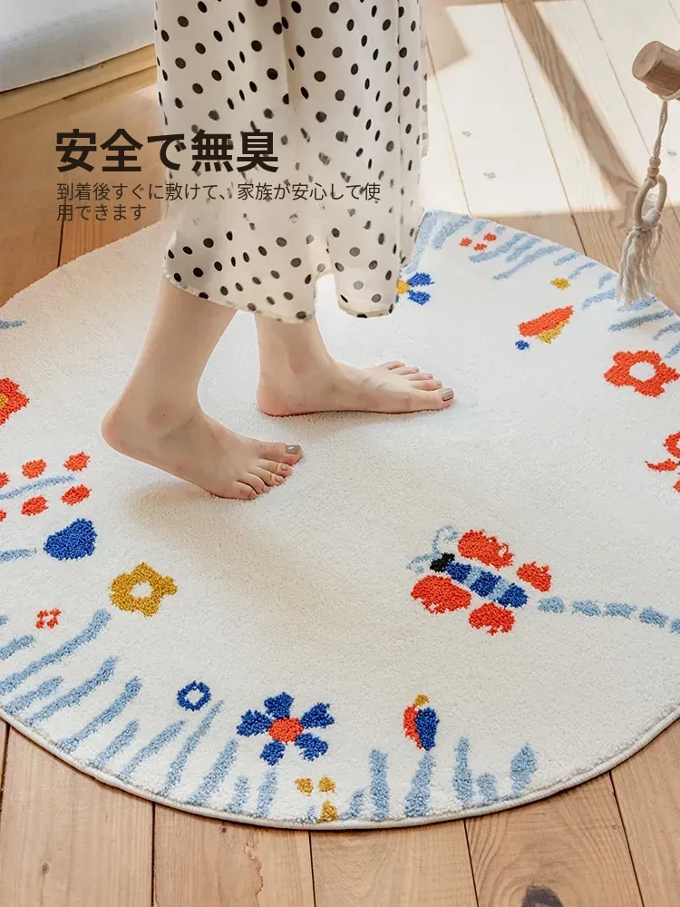 可愛い女の子のための冬用丸型子供部屋カーペット!滑り止め付きで洗えるので、ベッドサイドやクローゼットに最適。お部屋を暖かく、楽しい空間に変えてくれます。