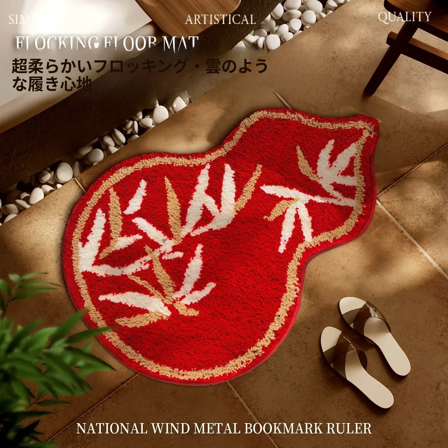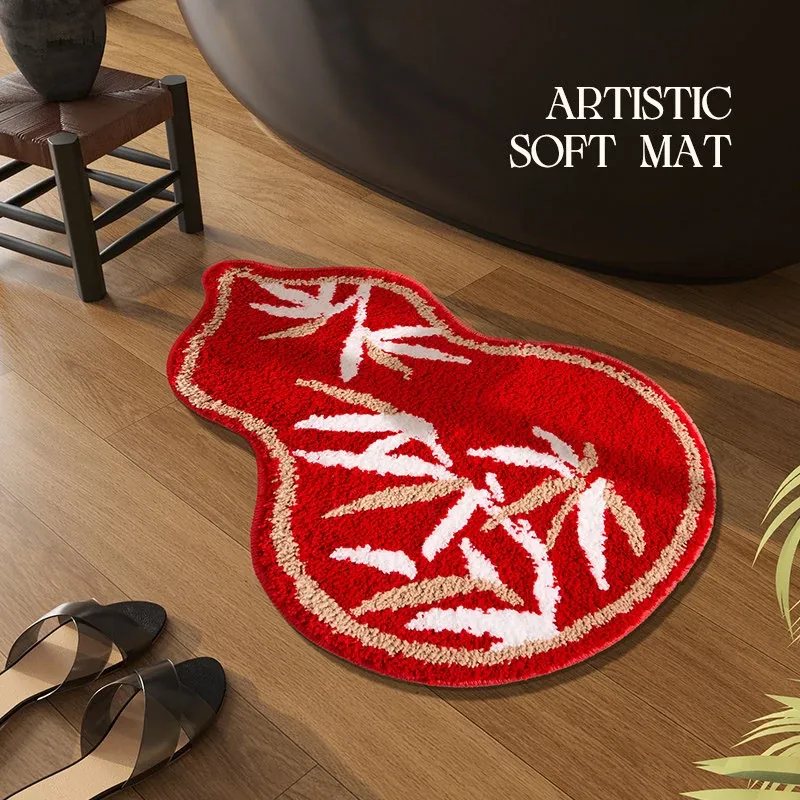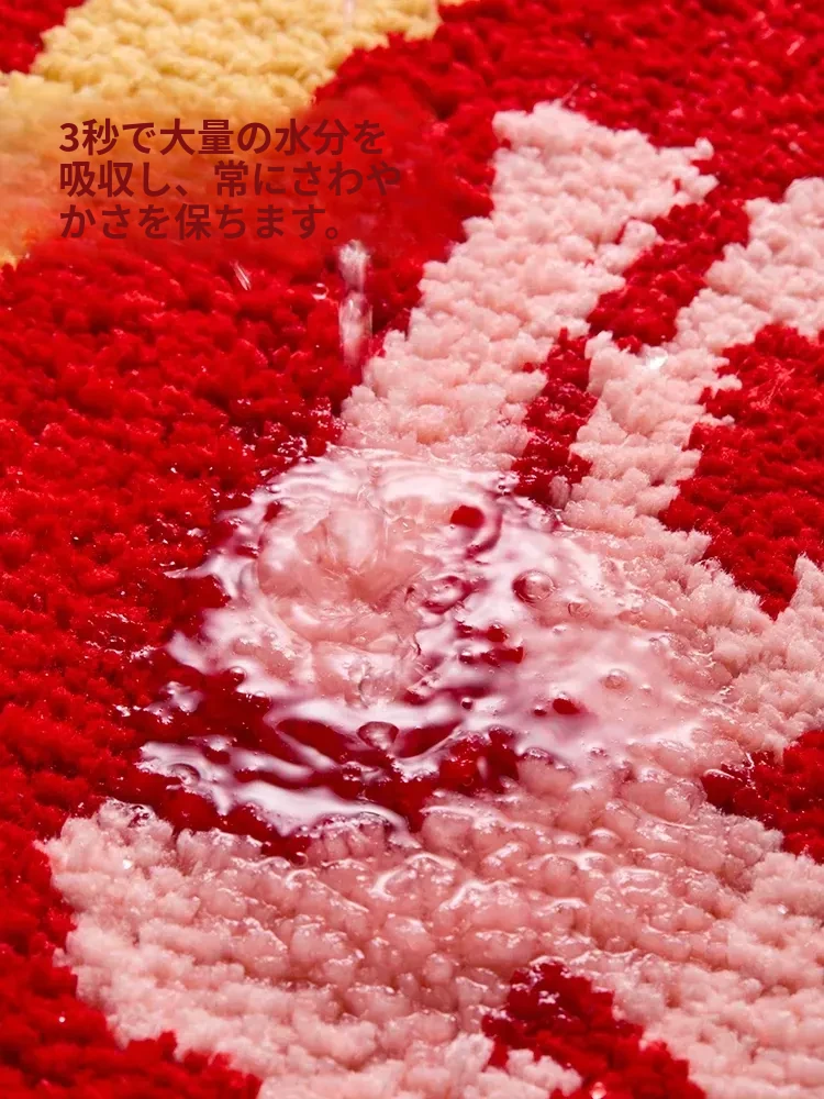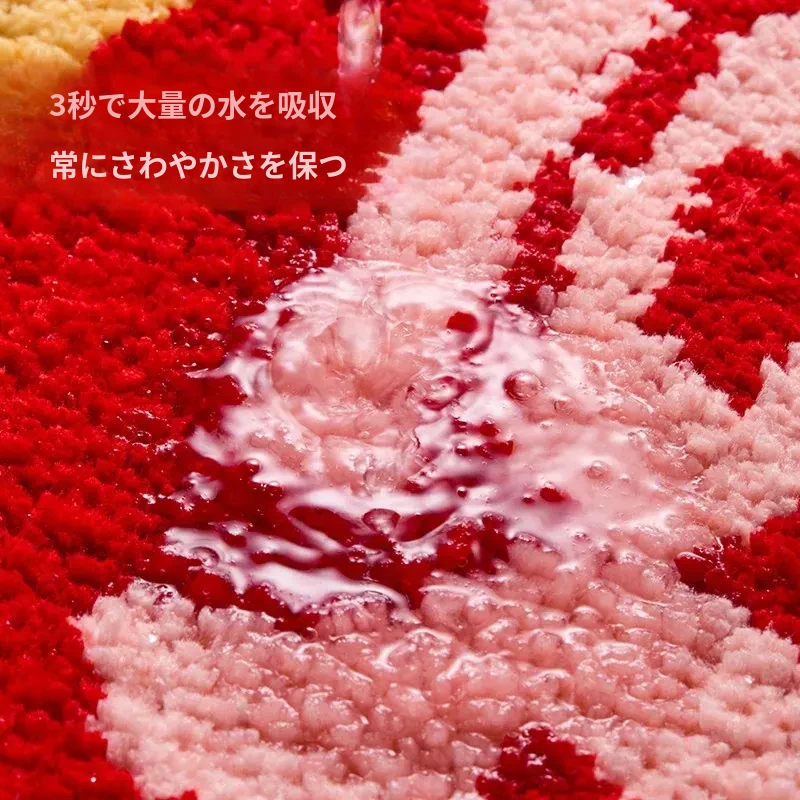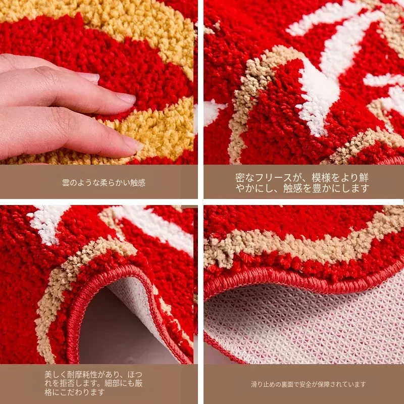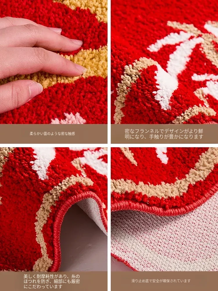 冬の赤いカボチャデザインのバスルーム吸水マット - 厚手フロッキー素材で、バスタブの横やトイレの入り口に最適!ふわふわの感触で、寒い冬でも快適な足元を実現!