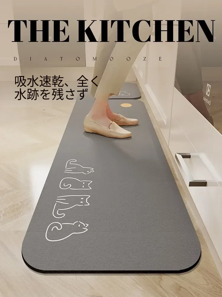 侘寂風デザインのキッチン専用マット!大面積で全敷き可能、洗濯不要のシリカゲル製。カット可能で滑り止め機能付きの便利なフロアカーペット!自宅での心地よい空間を演出します。