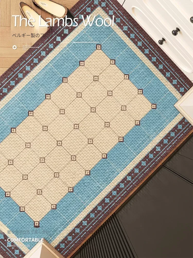 2026年新作!高級感あふれる中古風玄関マット - カスタマイズ可能なブルーのレトロカーペットで、あなたの玄関をスタイリッシュに演出!