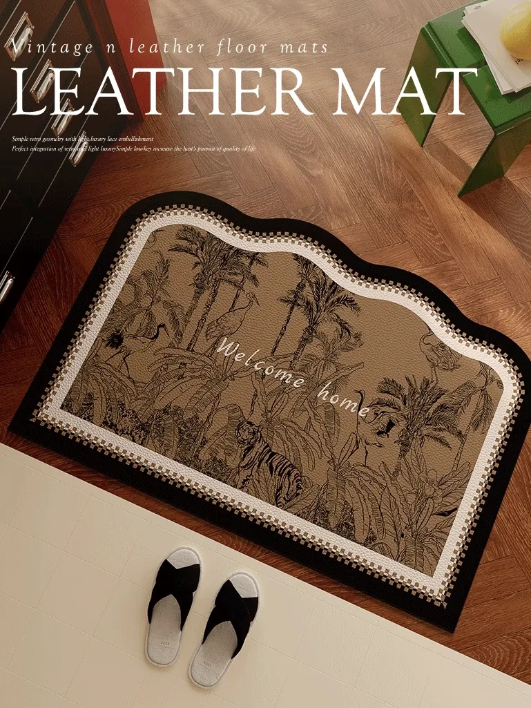 レトロデザインの革製玄関マット|耐汚れ&洗える防水タイプ|カスタマイズ可能なドアマットで、あなたの玄関をスタイリッシュに演出!