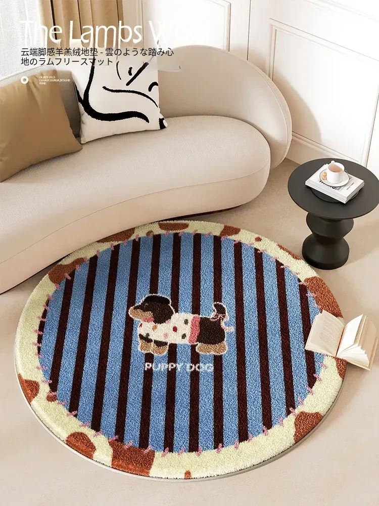 かわいい円形カーペット - 書斎や寝室、リビングにぴったり!ふわふわで厚手、暖かい足元をサポート。デスクチェア用の滑り止めマットとしても最適!おしゃれで実用的、あなたの空間をもっと快適に。