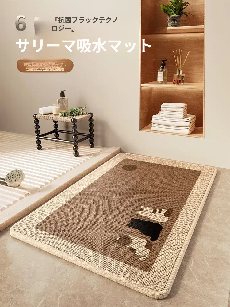 カートゥーンデザインのバスルームマット!シリカゲル採用で超吸水・速乾・滑り止め機能付き。トイレやシャワールームの入り口に最適な清潔感溢れる足元マットで、毎日のバスタイムをもっと楽しく!