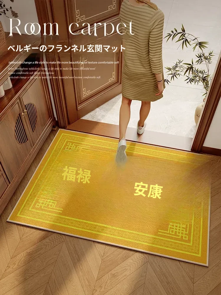 金色の玄関マット - 家庭の安全を守る滑り止め付き!中華スタイルの美しいデザインで、鮮やかな黄色が玄関を華やかに演出します。安心して出入りできる快適な空間を実現!