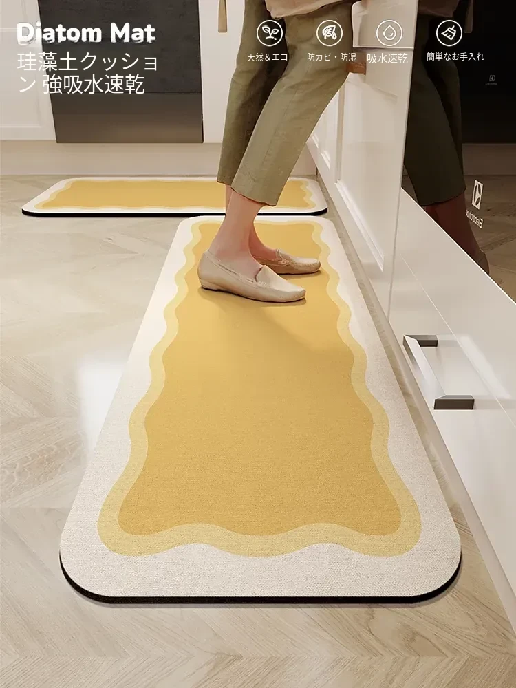 キッチン専用の洗浄不要・防水・滑り止めの珪藻土マット!トイレやドア前で活躍する長方形の吸水マットで、清潔さと安全を両立!快適な生活空間を手に入れましょう!