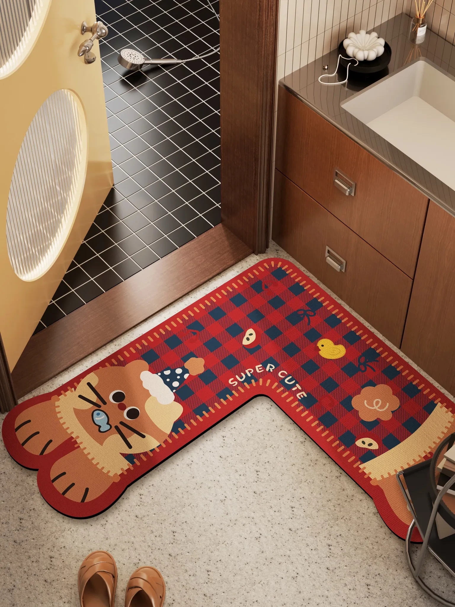 吸水性抜群!リンゴ型の滑り止めバスマット - トイレの入り口専用、速乾性で清潔感あふれるバスマット!快適なバスタイムを実現します。