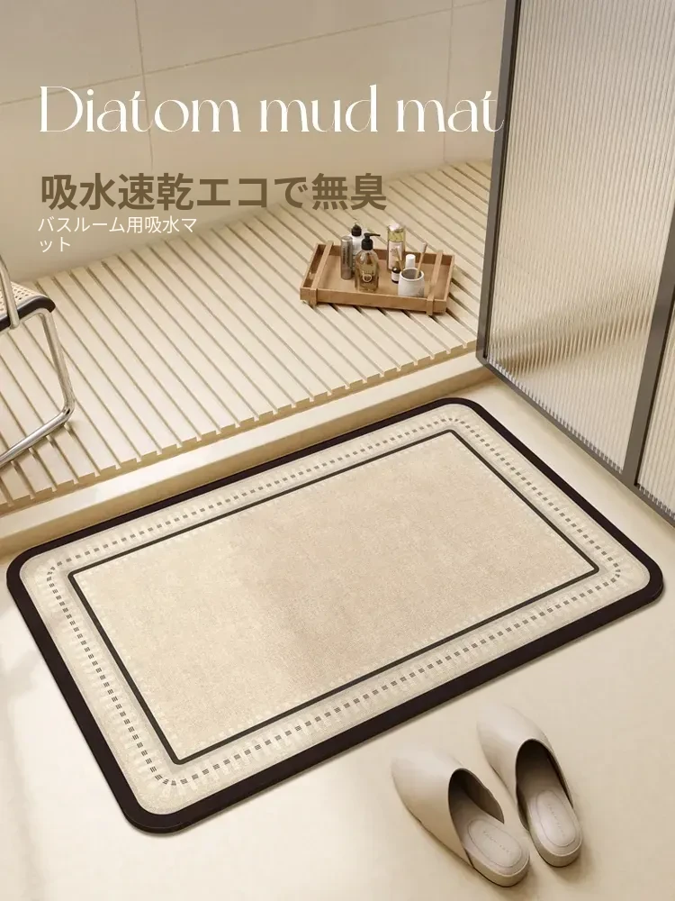 クリーミーなバスルーム吸水マット - シリカゲル製バスルーム用ドアマット、滑り止め機能付きでトイレもきれいに保つ!耐汚れ性に優れ、快適な足元を実現。あなたのバスルームに最適なアクセント!