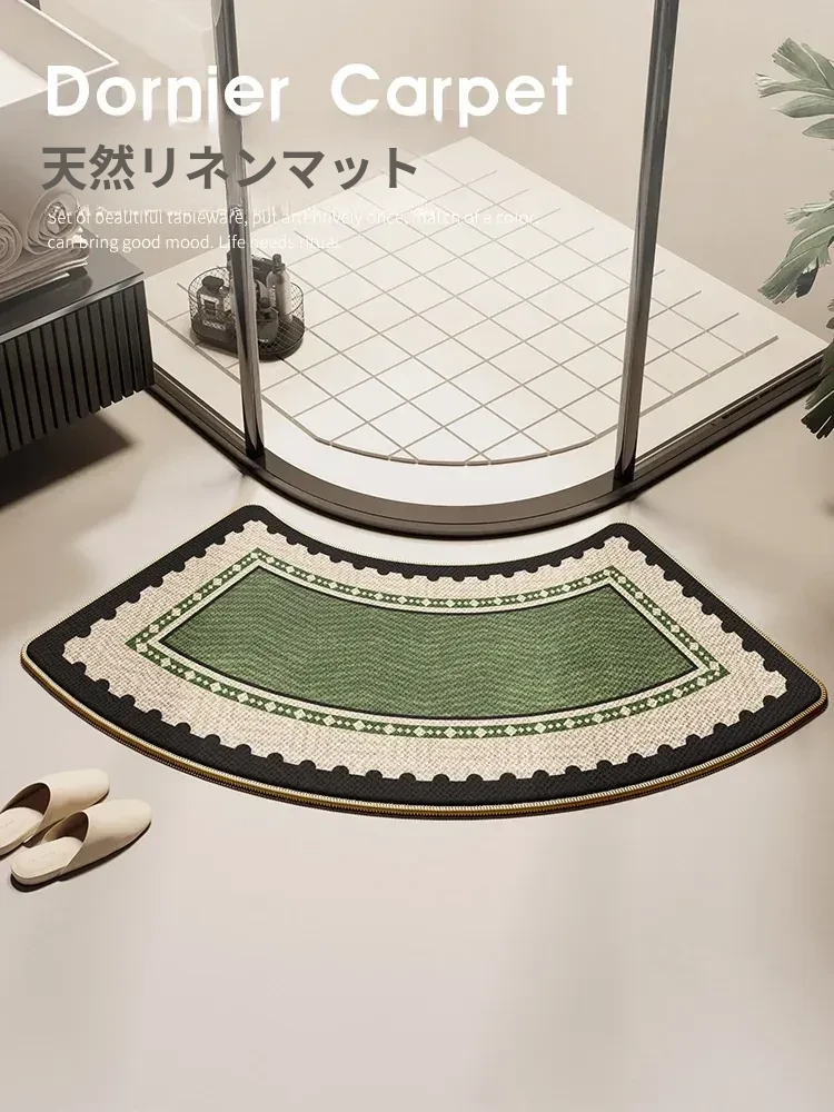 バスルーム用アーチ型マット 速乾・防滑・吸水のファンシェイプカーペット!おしゃれなリネン風デザインで、浴室をスタイリッシュに演出。快適なバスタイムをサポートする必須アイテム!