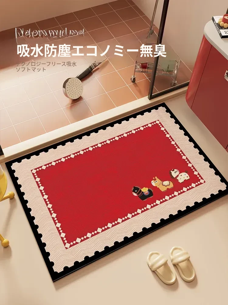 2026年新作!馬年デザインの吸水性バスルームマット - おしゃれな赤色でトイレの入り口を飾り、滑り止め機能付きで安全性抜群!あなたのバスルームを華やかに演出します。