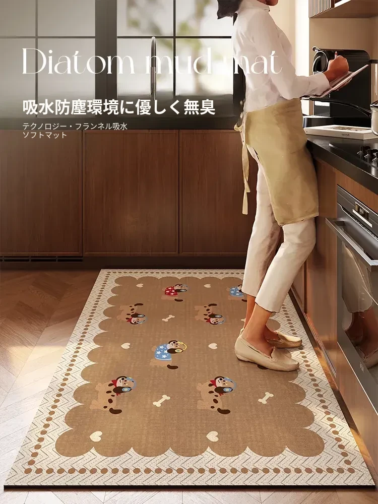 キッチン専用の大サイズ滑り止め防油・拭き取り不要のカーペット!吸水性抜群の珪藻土マットで、快適な作業空間を実現。お手入れ簡単で、毎日の料理をもっと楽しく!