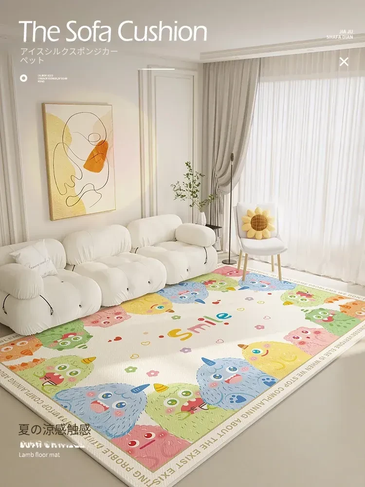 リビングルームにぴったり!かわいいキャラクターのベッドサイドマット、四季を通して使える万能ラグ。ソファやテーブルの下に最適で、子供部屋にもおすすめの快適なクッションマット!