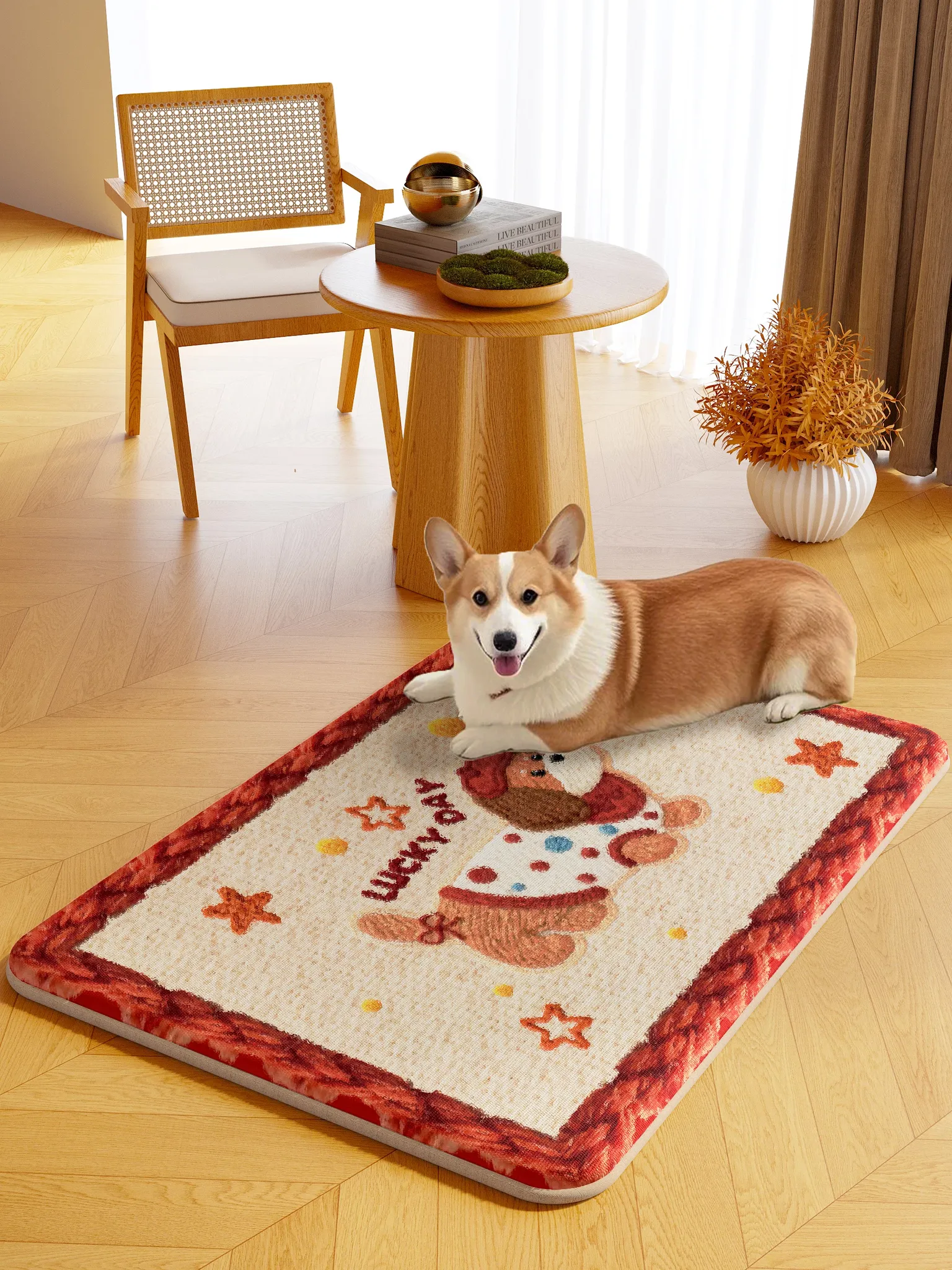 可爱な犬型デザインのフワフワラグマット|子供部屋や主寝室にぴったり|リーディングエリアにも最適なクリエイティブな家庭用マット|足元を優しく守る柔らかな触感!