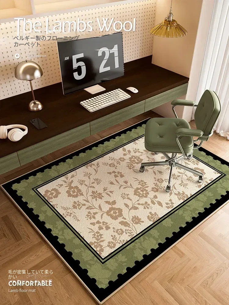 グリーン回転椅子用マット アメリカンレトロ風のロングカーペット 高級感溢れる軽やかなフットマット デスクや書斎の下に最適!おしゃれで快適な空間を演出します。