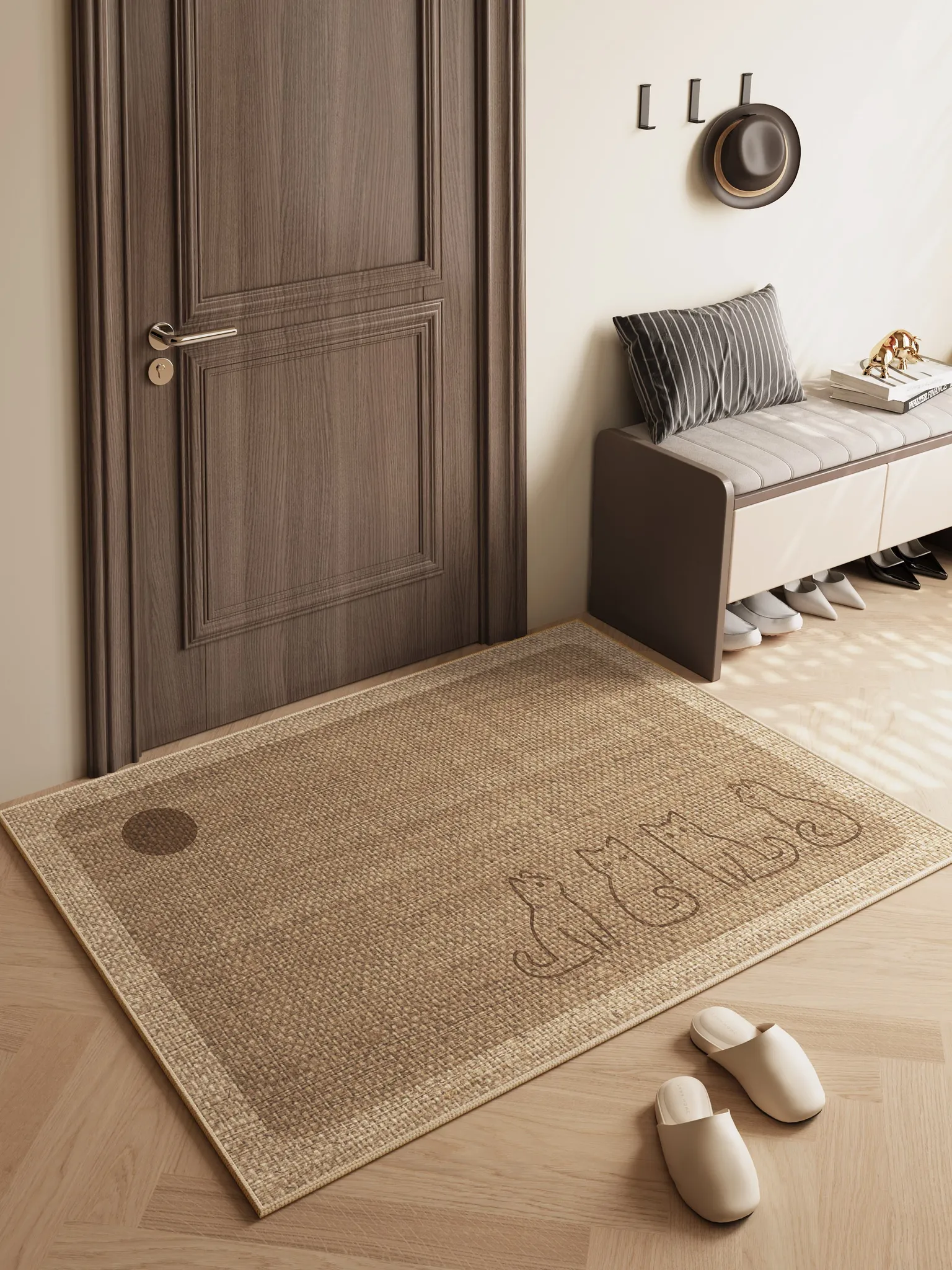 高級感漂うリネン風玄関マット - 滑り止め付き、室内の雰囲気を引き立てるおしゃれなドアマット。おしゃれなエントランスを演出し、快適な入室体験を提供します。