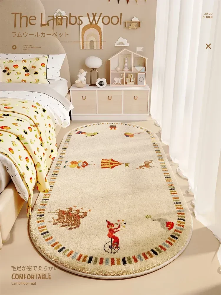 子供部屋にぴったり!厚手のカートゥーンデザインラグ、転倒防止&お手入れ簡単!バルコニーにも最適な滑り止め楕円形マットで、安全で楽しい空間を演出!