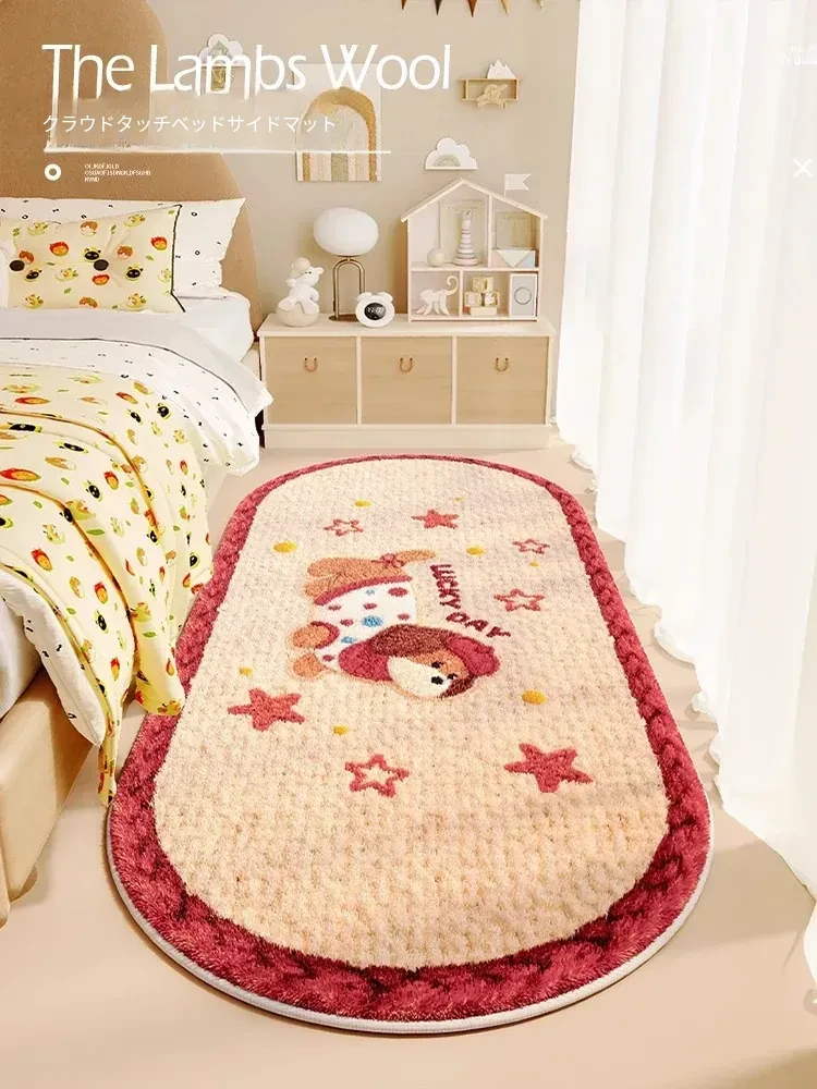 ドーパミンピンクカーペット 女の子の寝室にぴったりなクリーム風ラグ プリンセスルームのベッドサイドマット カートゥーンデザインのふわふわマットで、心地よい空間を演出!