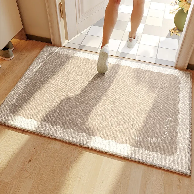 クリーム風の玄関マット—おしゃれで機能的な入居者用ドアマット!靴を脱ぐ際に最適、家庭用にぴったりな耐汚れカーペット。玄関を明るく彩り、快適な空間を演出します!