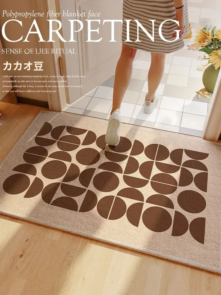 新中式国風デザインの玄関マット!個性的な形状の滑り止め機能付きシルクリングカーペット。高級感あふれる入門用マットで、土を持ち込まない快適な空間を演出します。
