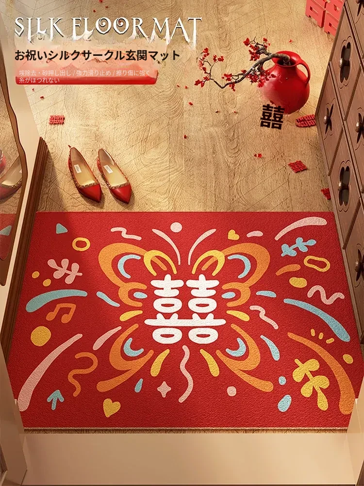 新年特选!2026年最新デザインの赤い入居マット - 屋外用滑り止めフットマット、土汚れを防ぎ、玄関を華やかに彩る装飾カーペット!快適で安全な新生活をスタートしましょう!