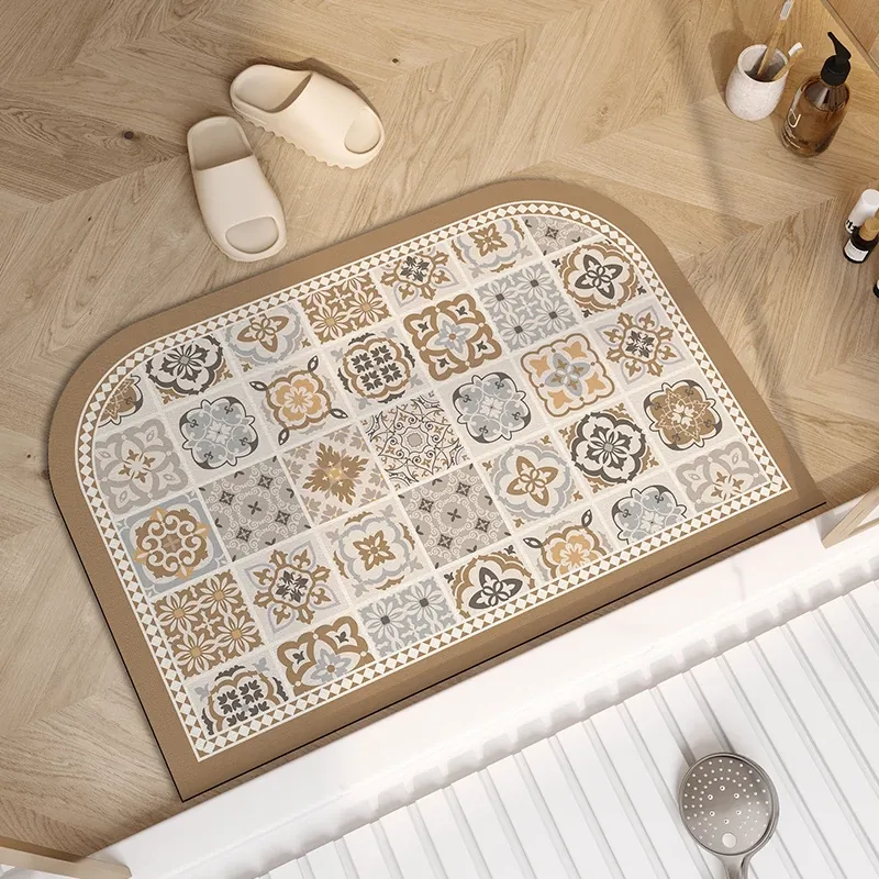 バスルーム用シリカゲルマット アメリカンスタイルのユニークな形状 吸水性抜群!滑り止め付きトイレマット おしゃれで機能的な玄関マットで、快適なトイレ空間を実現!