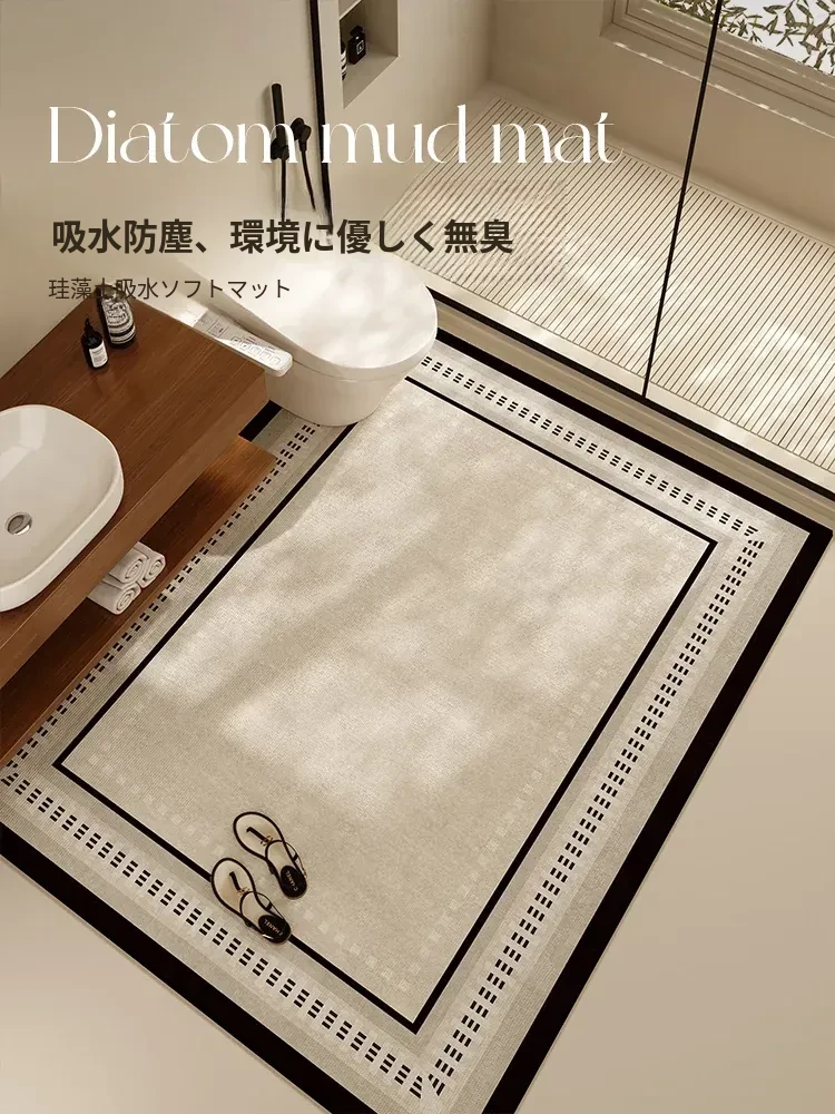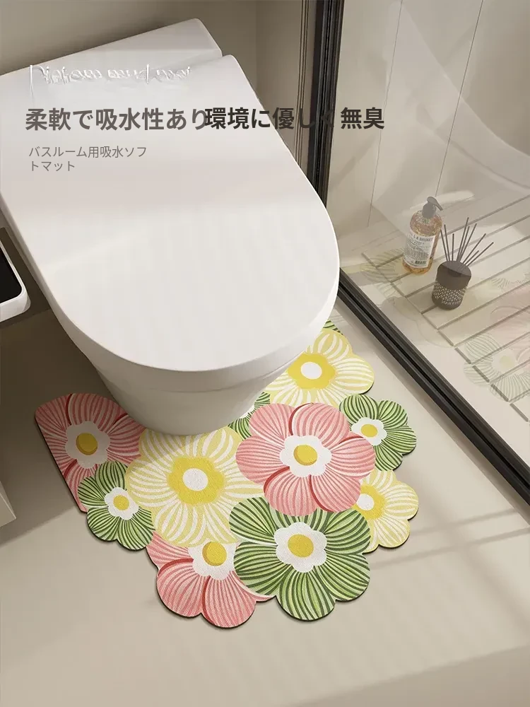 バスルーム全体に敷ける吸水速乾マット!滑り止め付きの大判サイズ、簡単にカット可能なデザインで、トイレや洗面所にもぴったり。おしゃれで実用的なデコレーションとして、毎日の生活を快適にサポートします!