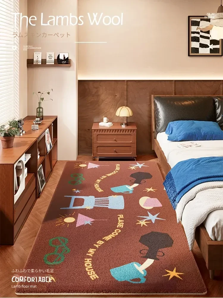 アメリカンレトロスタイルの暖かいベッドサイドマット|冬の寝室やリビングに最適!厚手の長方形デザインで、汚れに強いふわふわのラグ。ソファやテーブルの下にもぴったり!快適さとおしゃれさを兼ね備えたアイテムです。