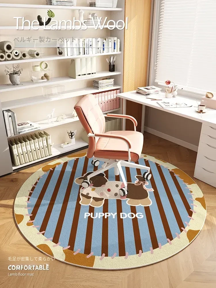かわいいカートゥーンデザインの丸型チェアマット!子供部屋や書斎にぴったりの滑り止め付き、パソコンチェアやキャスター椅子からの床を守る耐摩耗マット。おしゃれで実用的、楽しい空間を演出します!